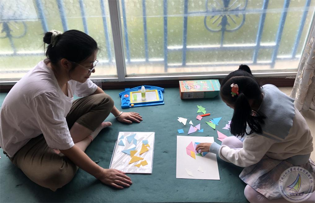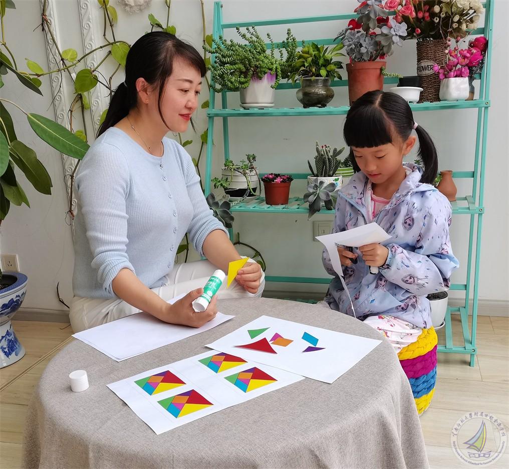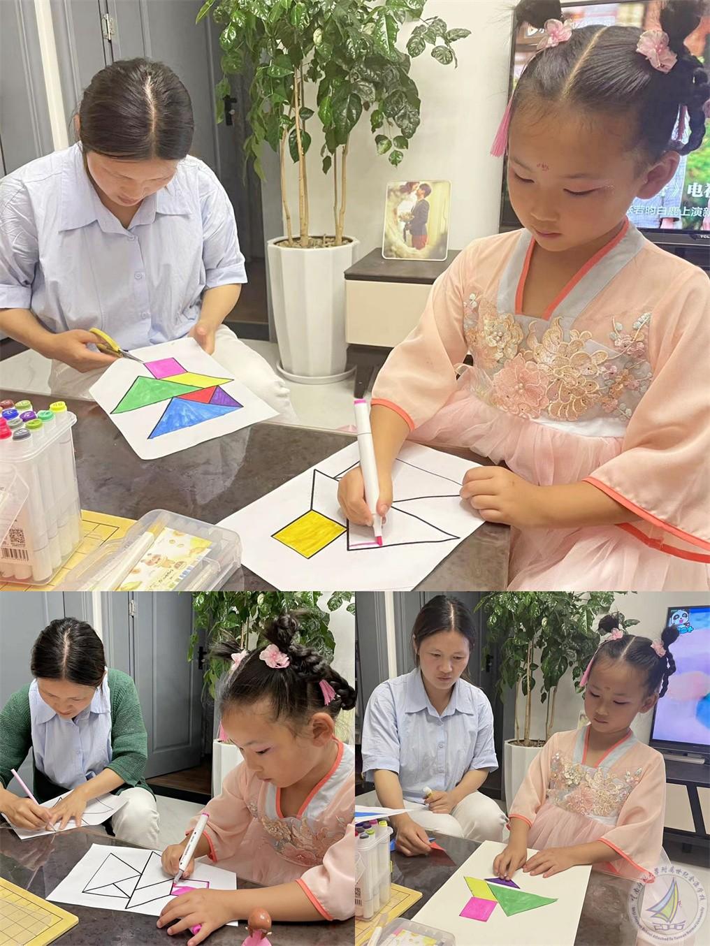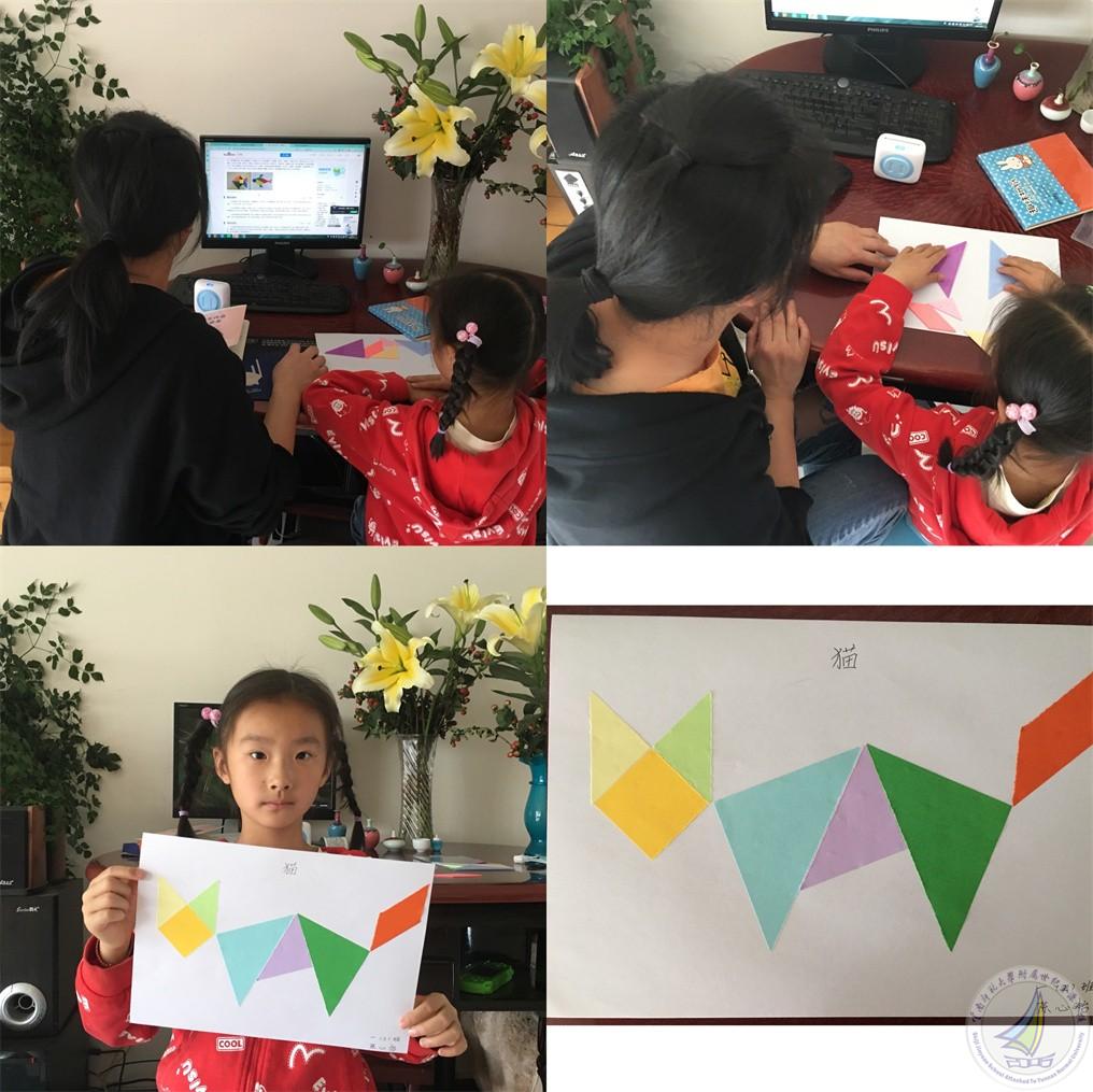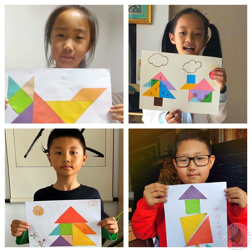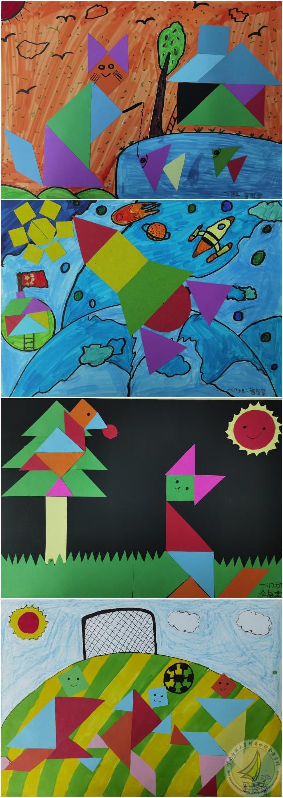 一块块五颜六色的七巧板穿梭于孩子们小巧的手指间,东一拼,西一补,制作出一幅幅生动的拼图作品。看,小猫钓鱼的故事、载着航天梦想的火箭、激烈的球赛……