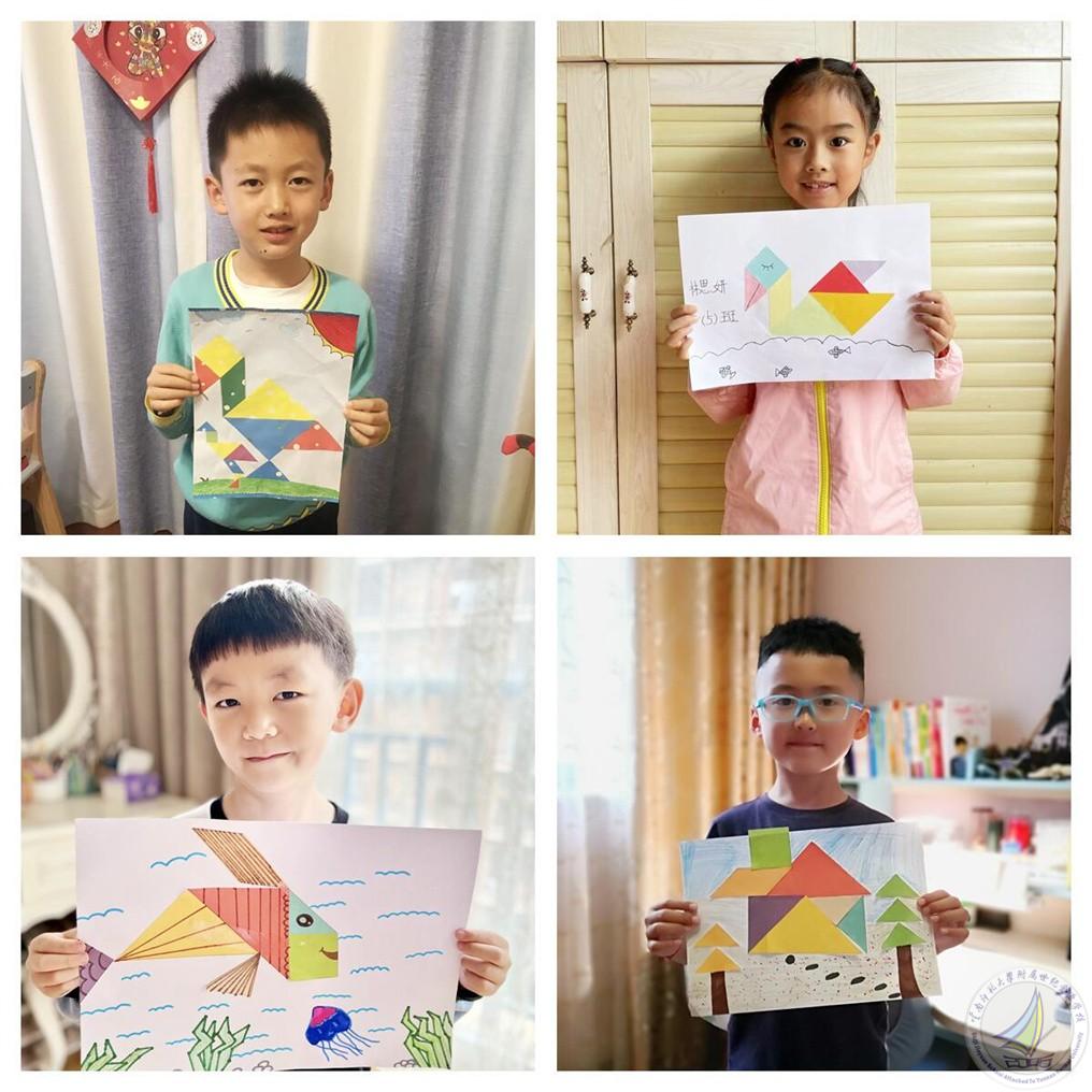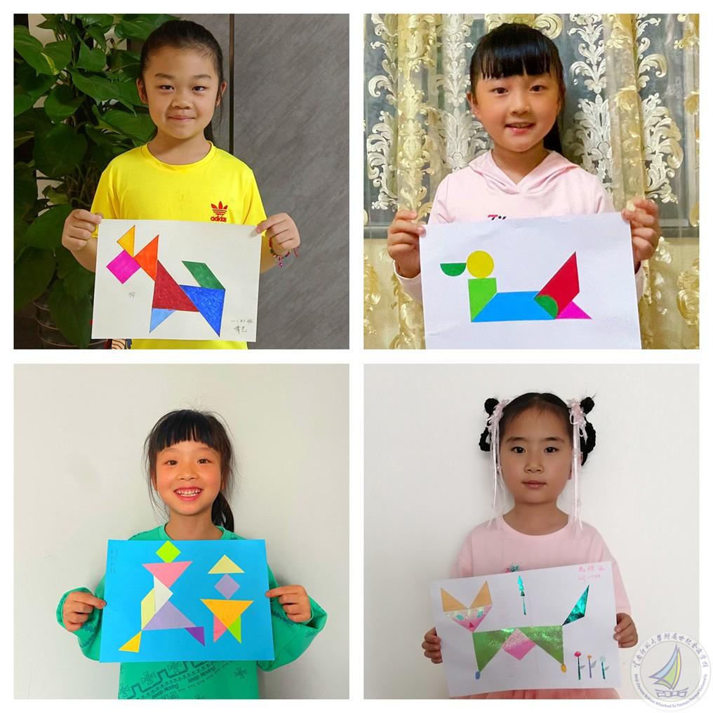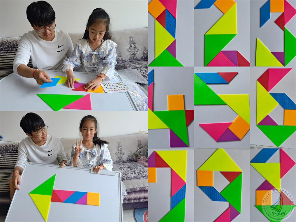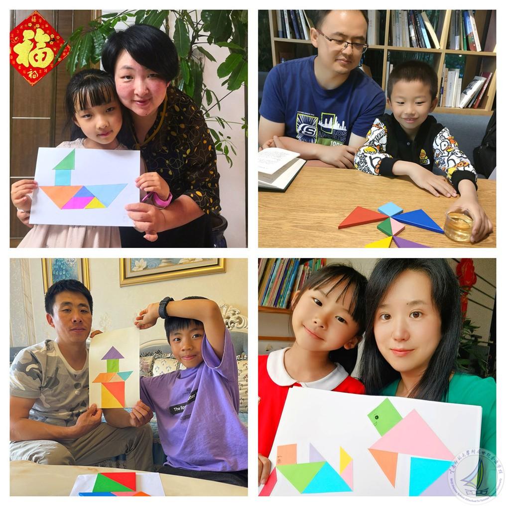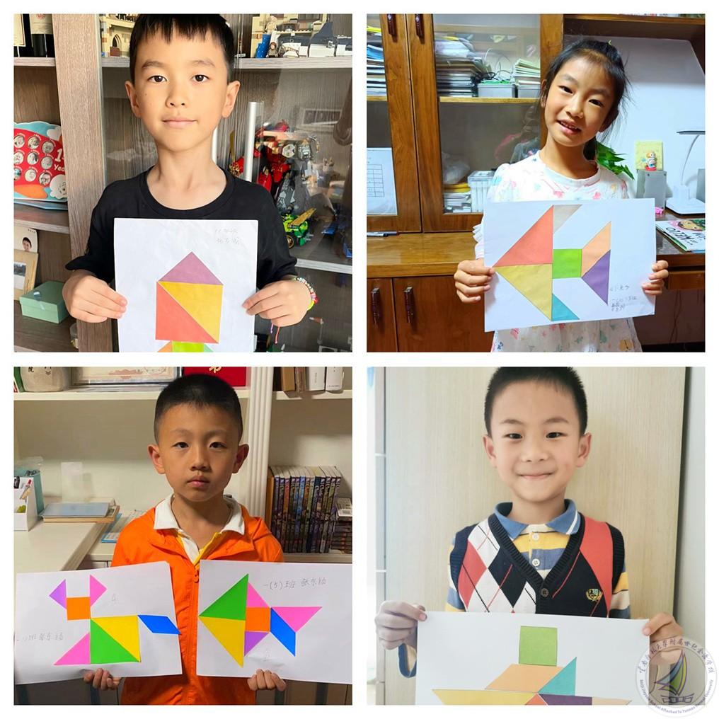 为了丰富学生的数学文化,锻炼学生动手操作能力,培养学生的创新意识,我校小学段数学教研组在鲍学良副校长的带领下开展了一系列以“实践真知,‘数’我风采”为主题的跨学科项目式学习活动。结合本学期的学习内容,借端午节的契机,一年级小萌娃们进行了一次别开生面的七巧板智慧趣拼亲子活动。