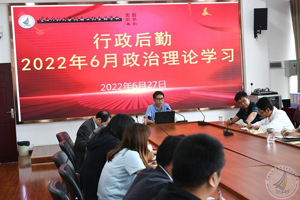 6月27日下午,在行政楼四楼会议室二举行了行政后勤部门全体教职工参加的政治理论学习。学习由简文武副校长主持并主讲,马永文书记、校长作学习总结发言。