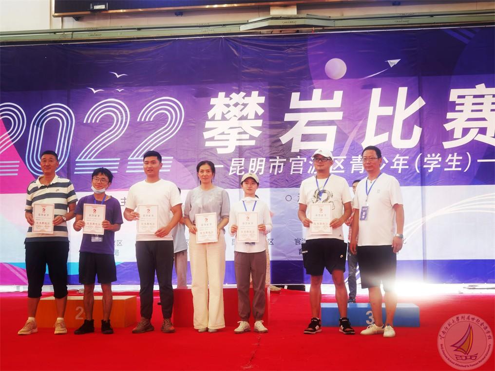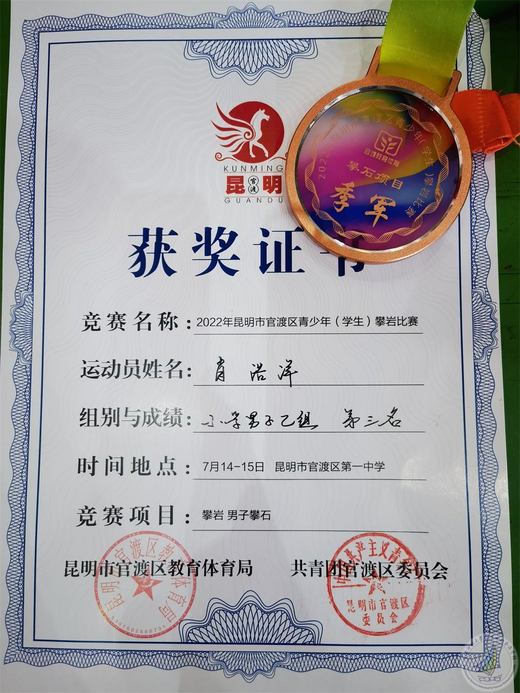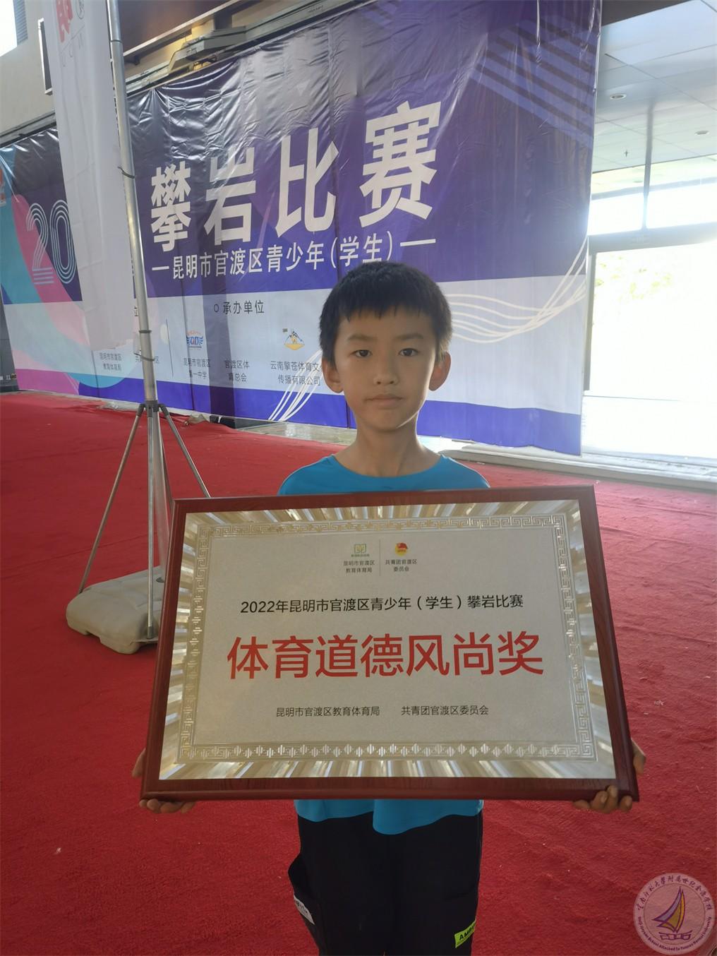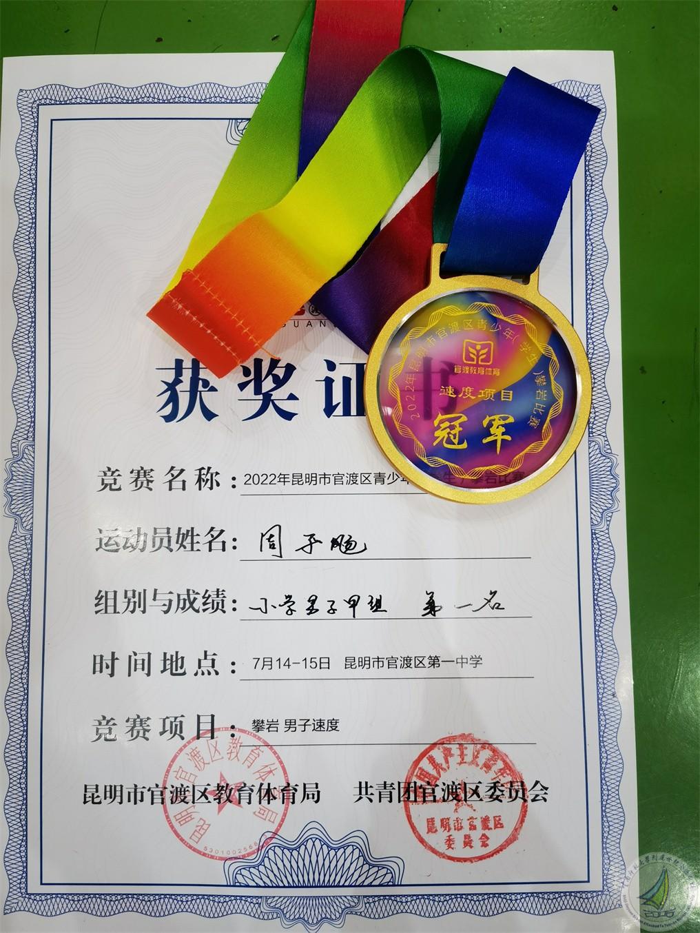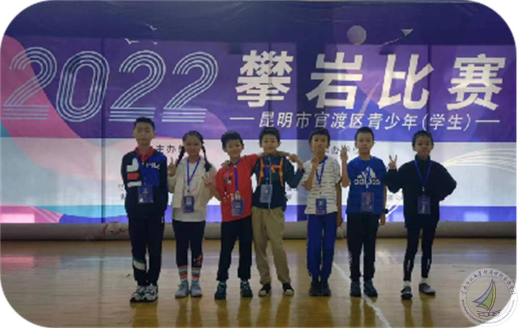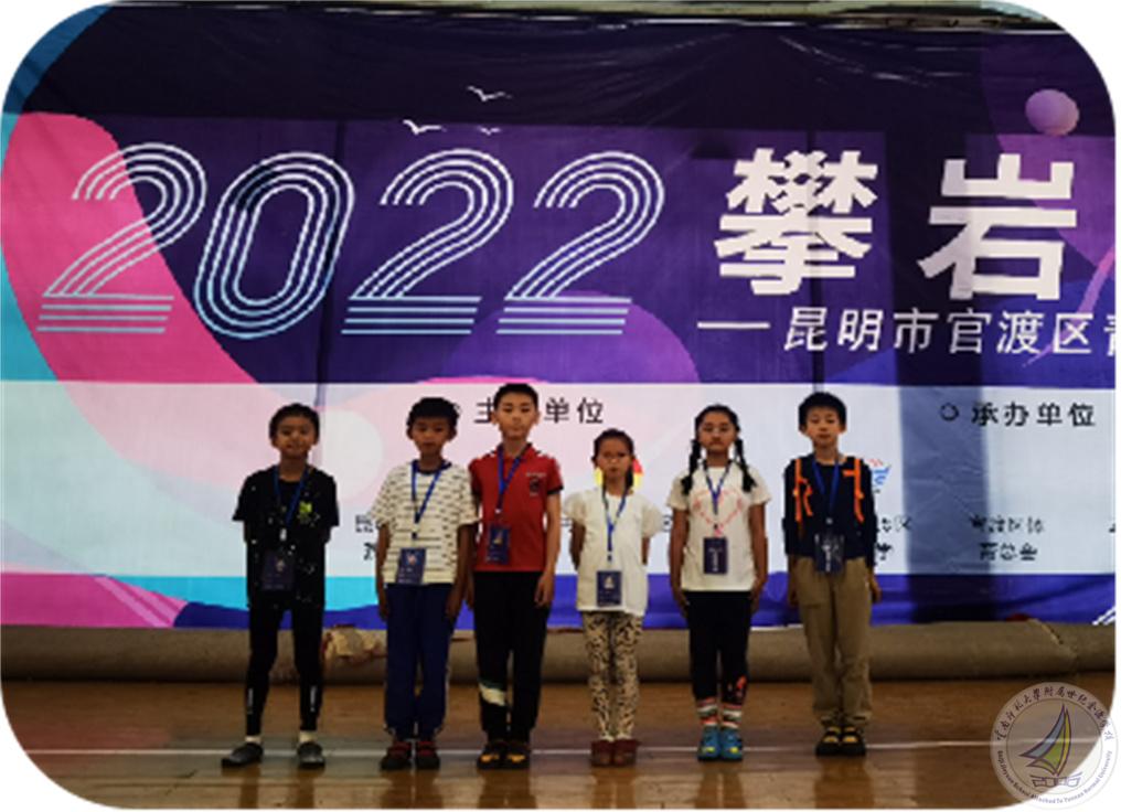 2022年昆明市官渡区青少年(学生)攀岩比赛于7月14-15日在昆明市官渡区第一中学校园攀岩场馆举办。云南师范大学附属世纪金源学校由梁珈老师带队,派出12名小学生参加比赛。三年级的郝若菲、蒋依辰、王跃蓁、周子飏四名同学参加了小学男、女甲组比赛,四年级的肖浩洋、闵则成、吴家荣、李景舟、陈文博、刘金牧屿、何卉蓁、杨骐嫚八名同学参加了小学男、女乙组比赛,比赛一共分为速度赛和攀石赛两场进行。