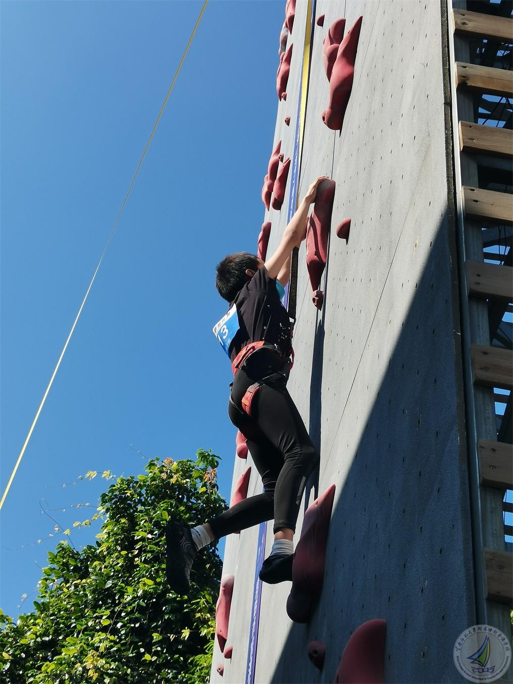 烈日当头,现场氛围热烈,同学们个个情绪高涨,迫不及待地大展身手。同学之间两两对决,速度与激情现场上演。号令一下,“小蜘蛛侠”们快速攀爬,身如蛟龙,一抓一跳,转眼间便快速到达top,跳跃拍板,一气呵成。他们团结进取、顽强拼搏,挑战自我,战胜自我,把“更快、更高、更强、更团结”的体育精神发挥得淋漓尽致。攀岩墙上,选手们尽力拼搏,攀岩墙下,观众们激情打气。