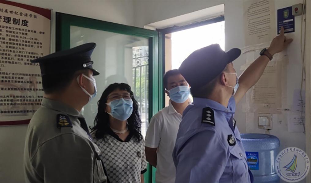 渠志春副校长带领后勤保障中心人员在世纪城派出所的指导下,对学校进行安全隐患排查,确保开学前校园安全。
