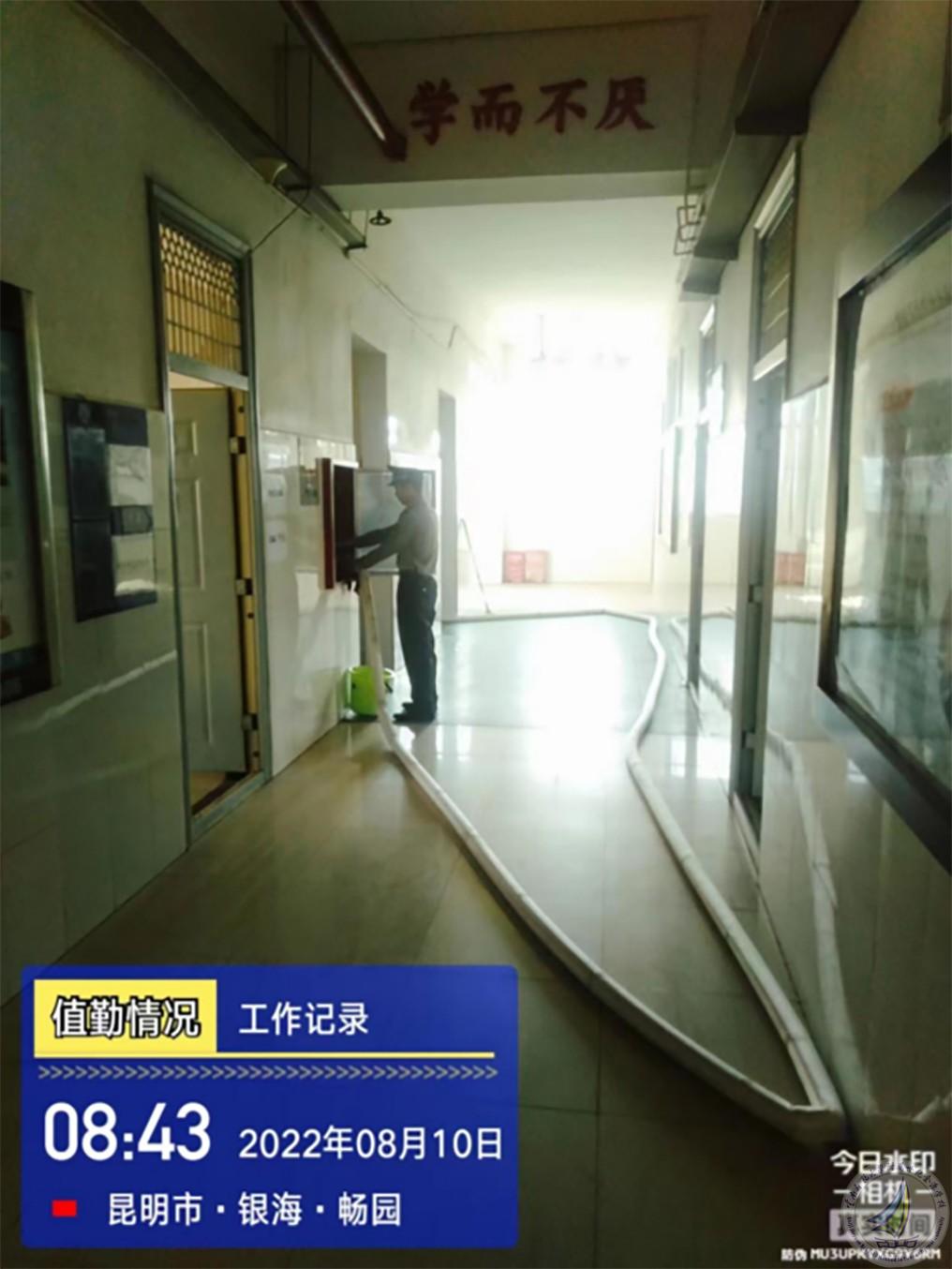 后勤保障中心对学校供电、供水设备和校园公共环境进行巡查、检修。