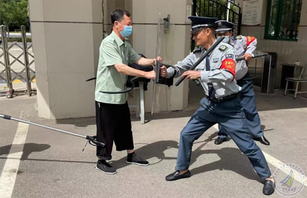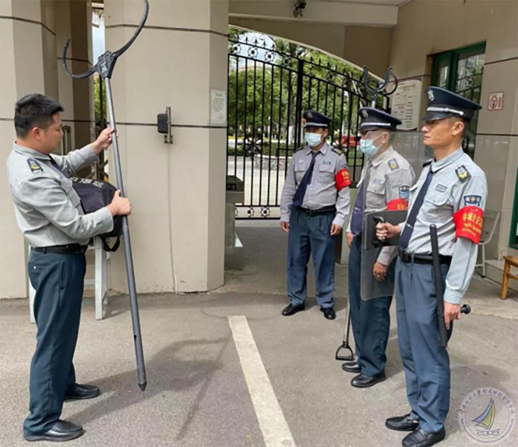 保安队组织学校开学前工作会议,对队员进行仪容仪表、礼貌礼节、队列基本意识、岗位基本要求器材使用方法与目的的培训,并组织队员器材使用培训,抓捕训练。