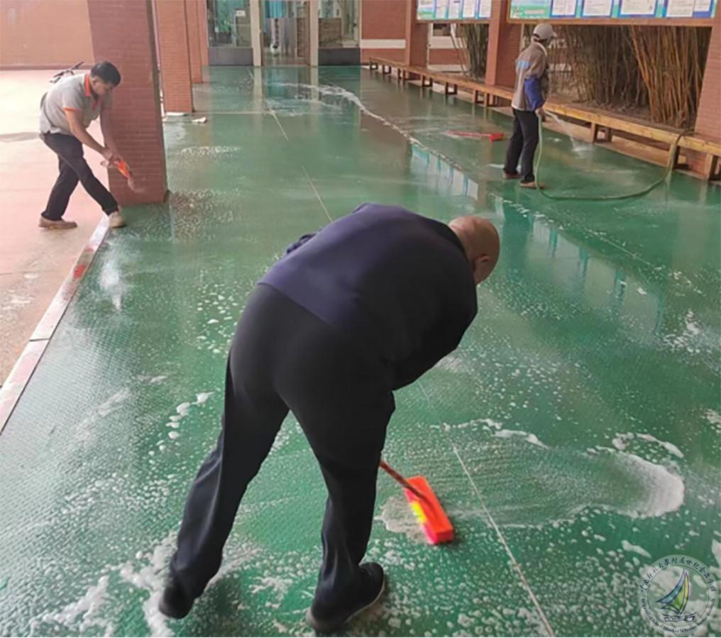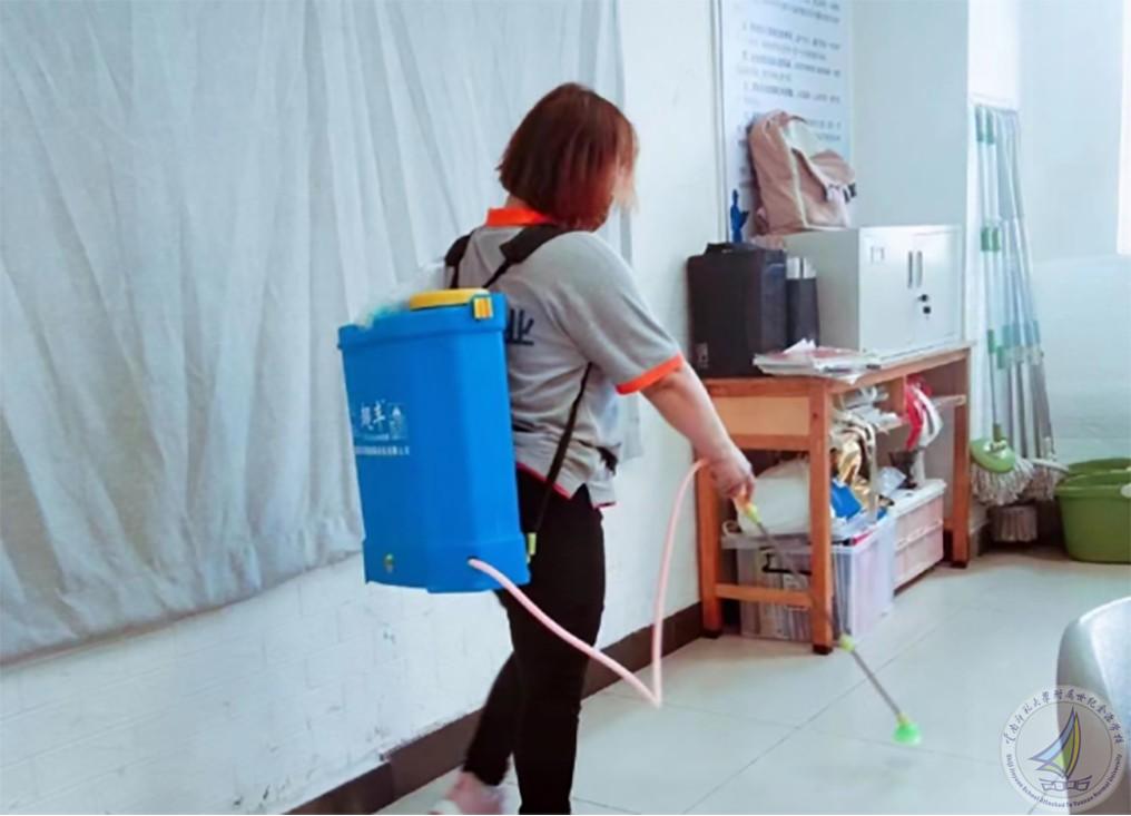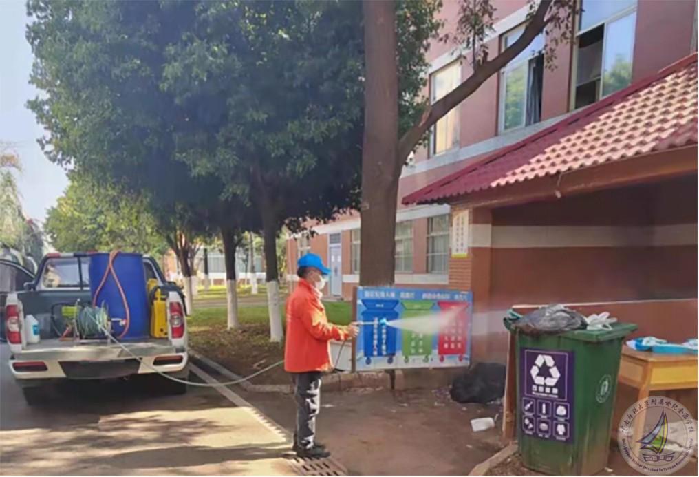 为确保公共环境卫生干净整洁,分别对楼道、卫生间进行大扫除,对校园花草树木完成了农药喷洒,对校园各处进行消毒等工作。对于发现的问题、存在的隐患,后勤保障中心及时安排工作人员进行维修整改,为返校师生提供安全舒适的校园环境。