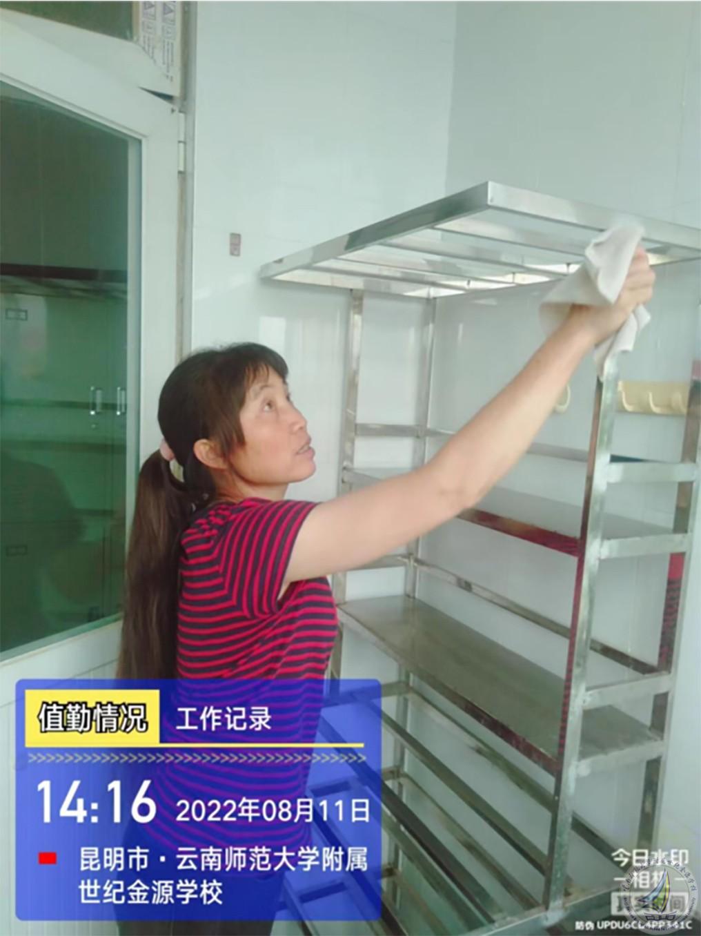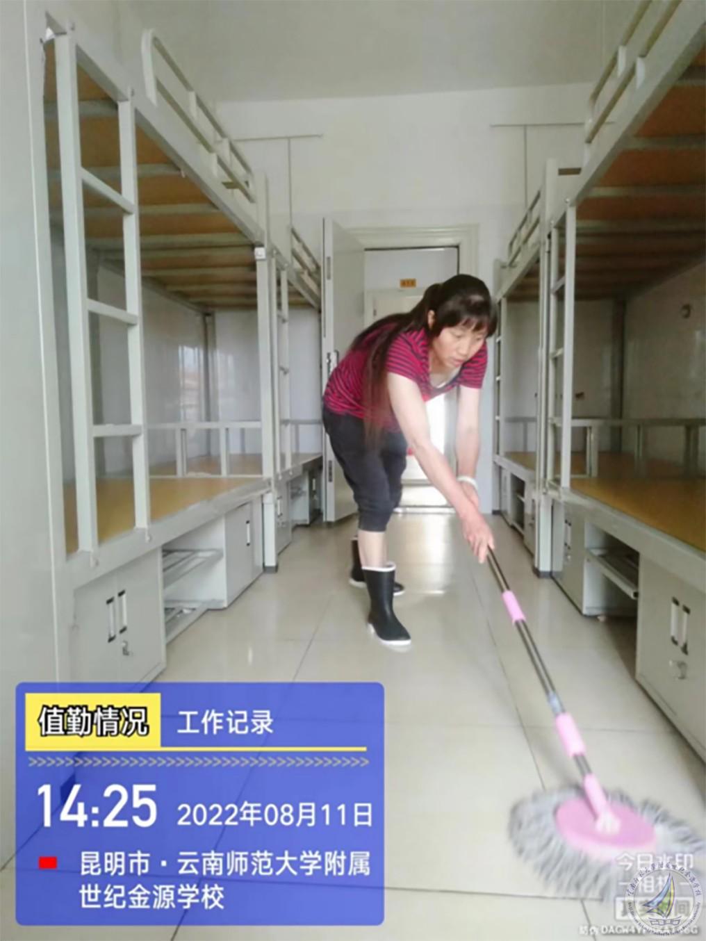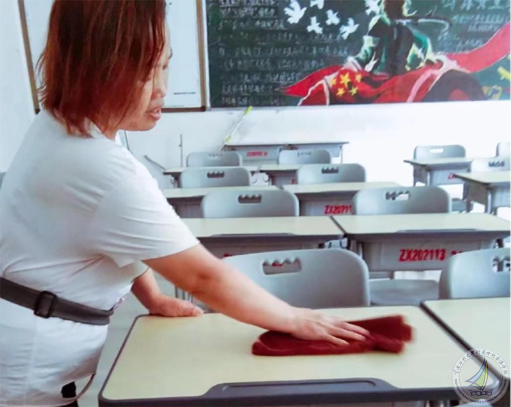 宿舍管理人员清理学生宿舍卫生,为住校生正常入住提供保障。
