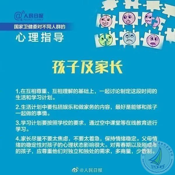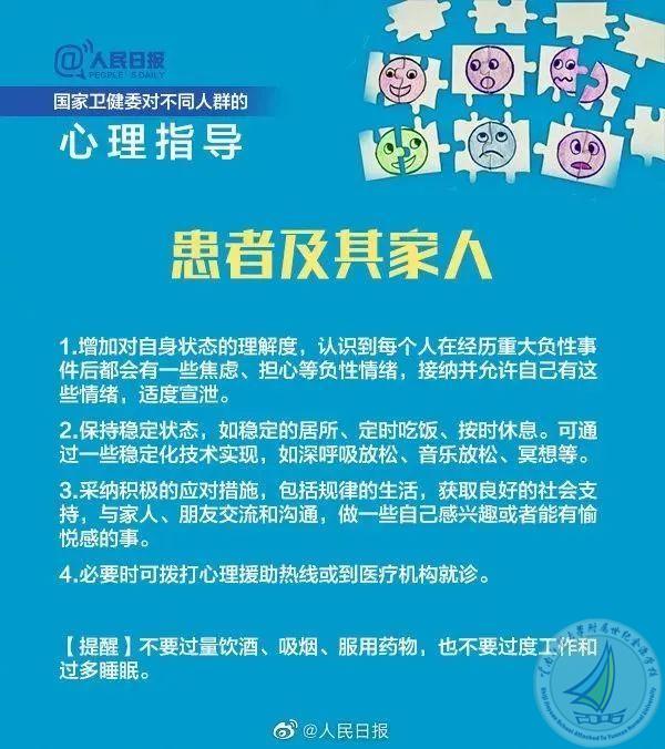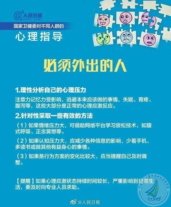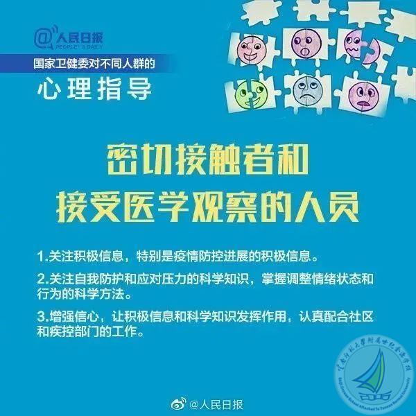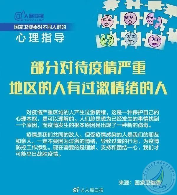 为加强疫情防控中公众的心理疏导工作,中央文明办、国家卫健委推荐了10条应对疫情心理疏导的视频短片(10条应对疫情心理疏导短片(附国家卫健委疫情心理指南)_腾讯新闻 (qq.com)),分别针对老年人、儿童、青少年、孕产妇、返岗工作人员、一线防疫人员、居家隔离人员、确诊(疑似)患者及家属、因疫情去世人员家属等人群在应对疫情过程中容易产生的心理问题,进行分众化、具象化的心理调适和心理抚慰。现分享《国家卫健委应对新型冠状病毒肺炎疫情心理指南》供您参考!守望相助,一起成长,我们永远在你身后!