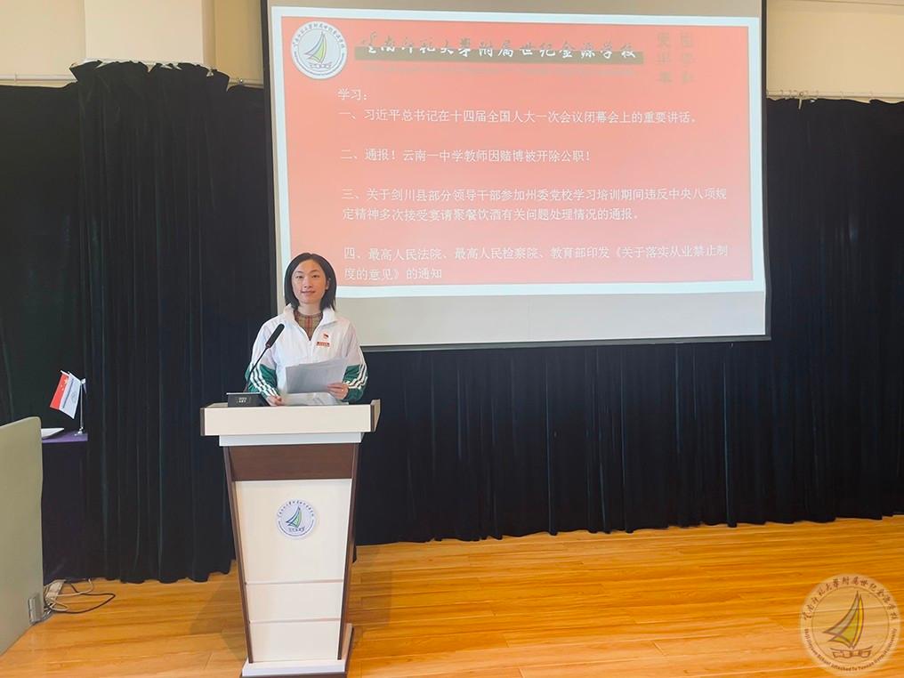 在渠志春副校长的统筹安排和杨洁园长的主持下,全体幼儿园教职工参与学习。学习要点为:1.习近平总书记在十四届全国人大一次会议闭幕会上的重要讲话。2.通报!云南一中学教师因赌博被开除公职!3.关于剑川县部分领导干部参加州委党校学习培训期间 违反中央八项规定精神多次接受宴请聚餐饮酒有关问题处理情况的通报。4.最高人民法院、最高人民检察院、教育部印发《关于落实从业禁止制度的意见》的通知。