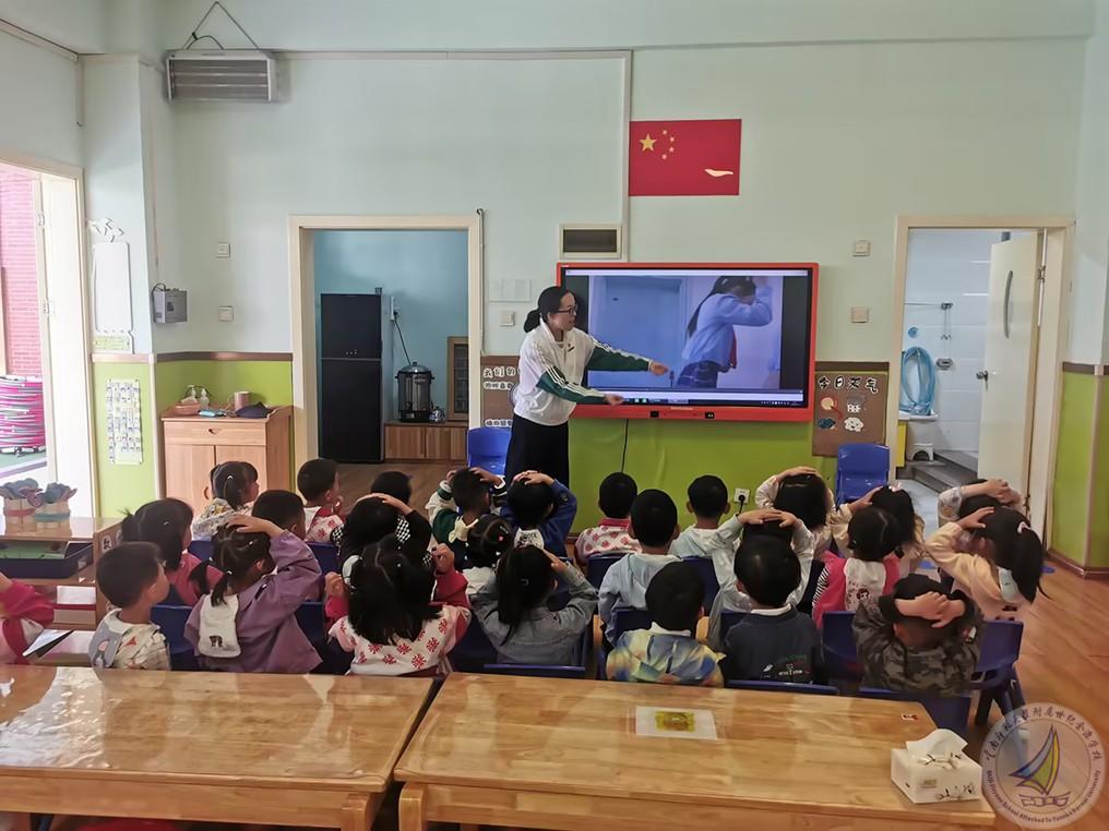 在集中教育活动中,各班老师通过安全教育课程,以情景演练、播放视频、动作示范等方式,让幼儿了解地震这一自然灾害,学会应急避震和安全疏散方法,做到每位孩子安全牢记心中,为后期的地震演练做好准备。