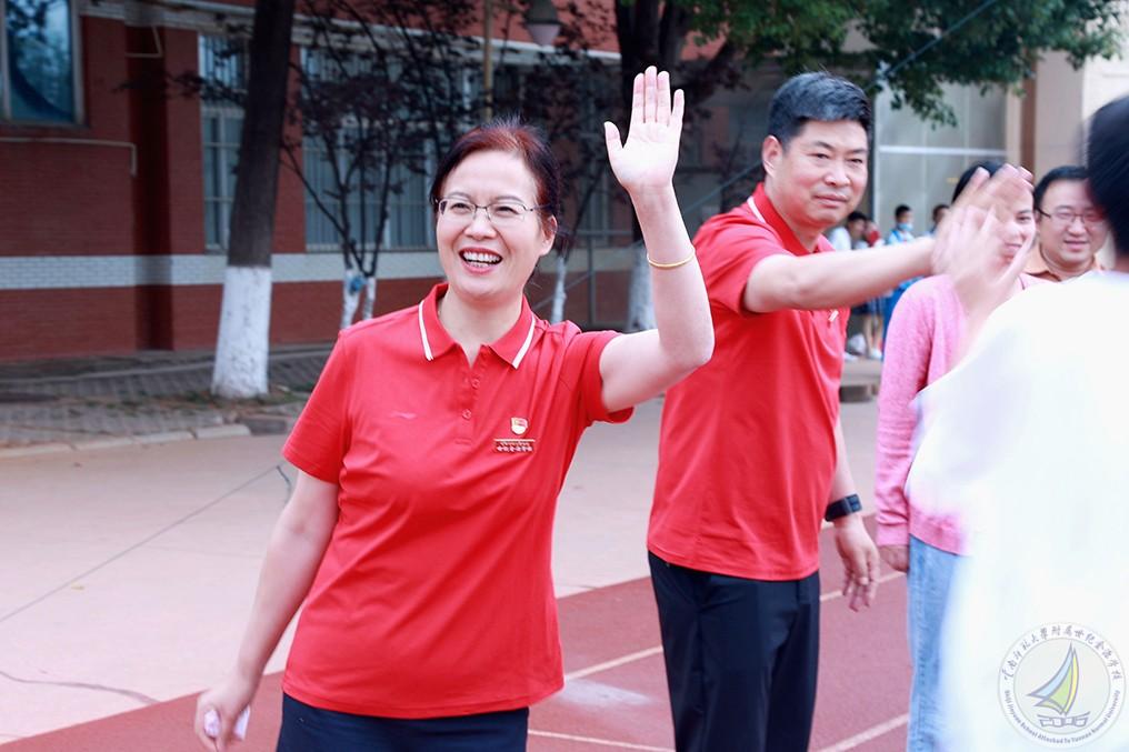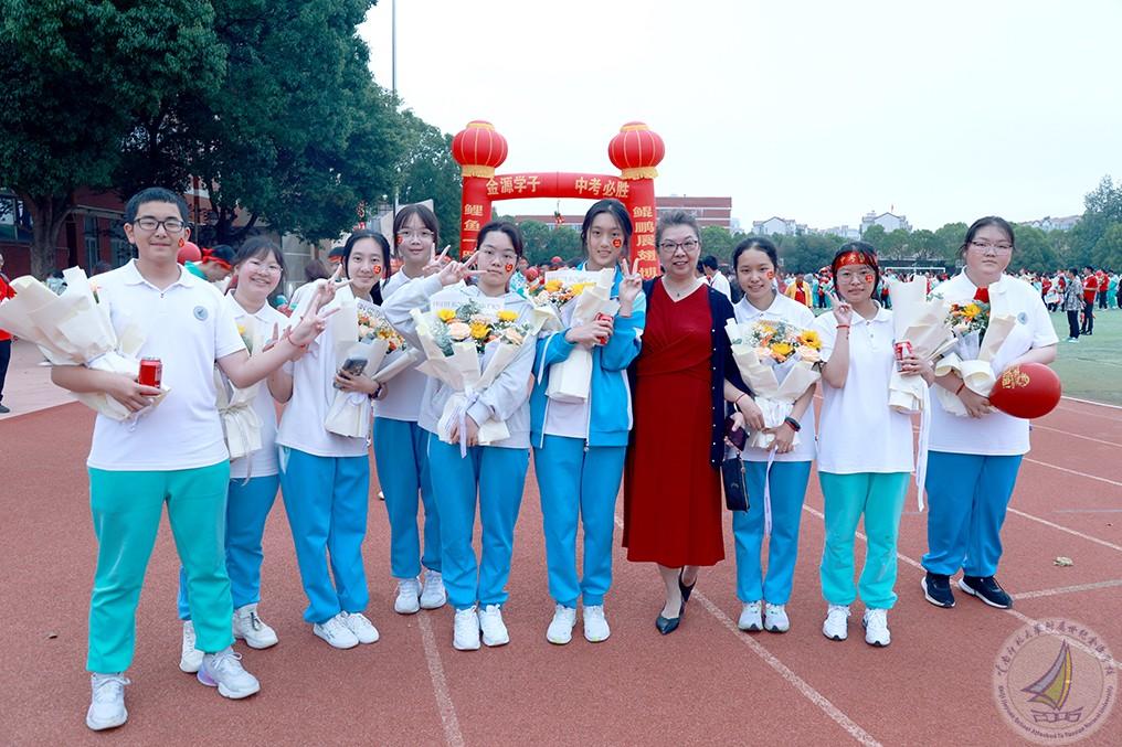 学校党委书记、校长王英,副书记许全友,副校长崔汝坤、渠志春、简文武;各中心、办公室主任及初中全体教师出席中考送考活动。