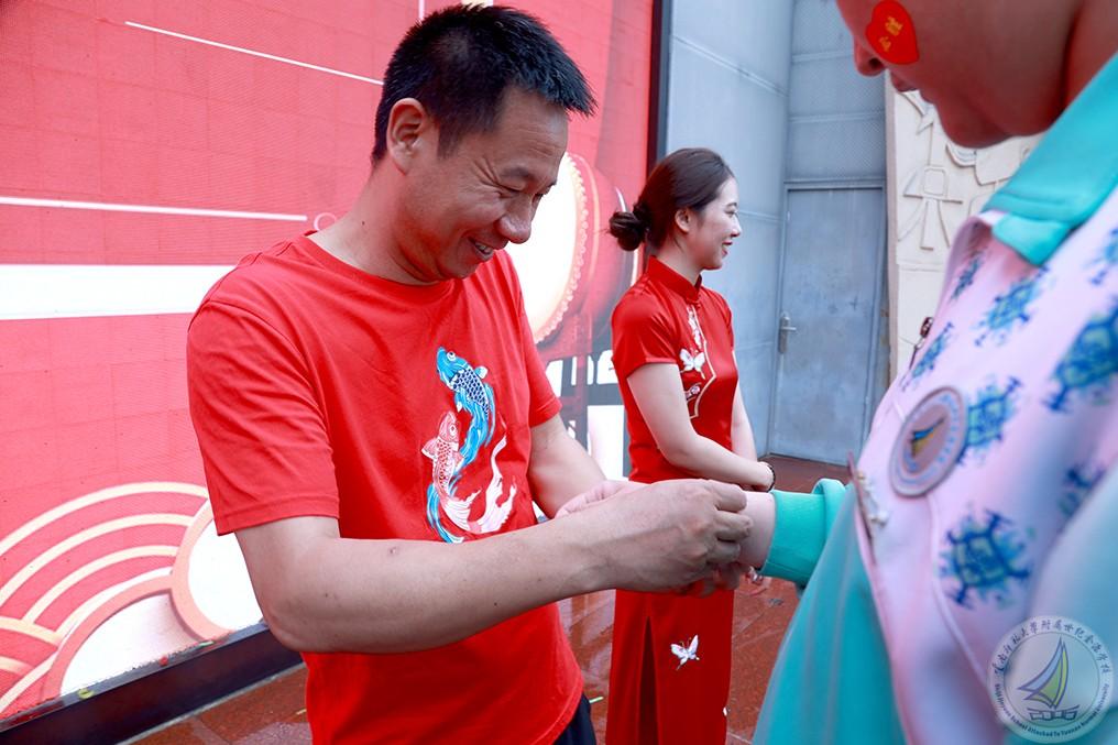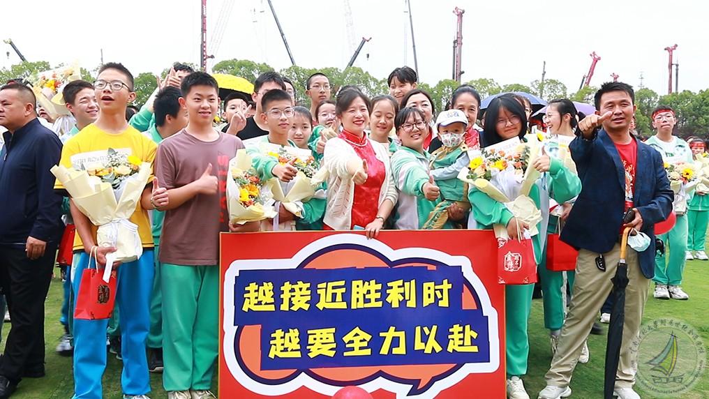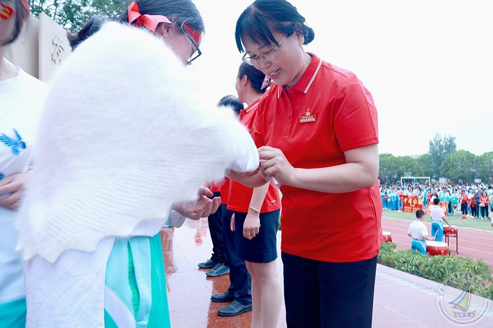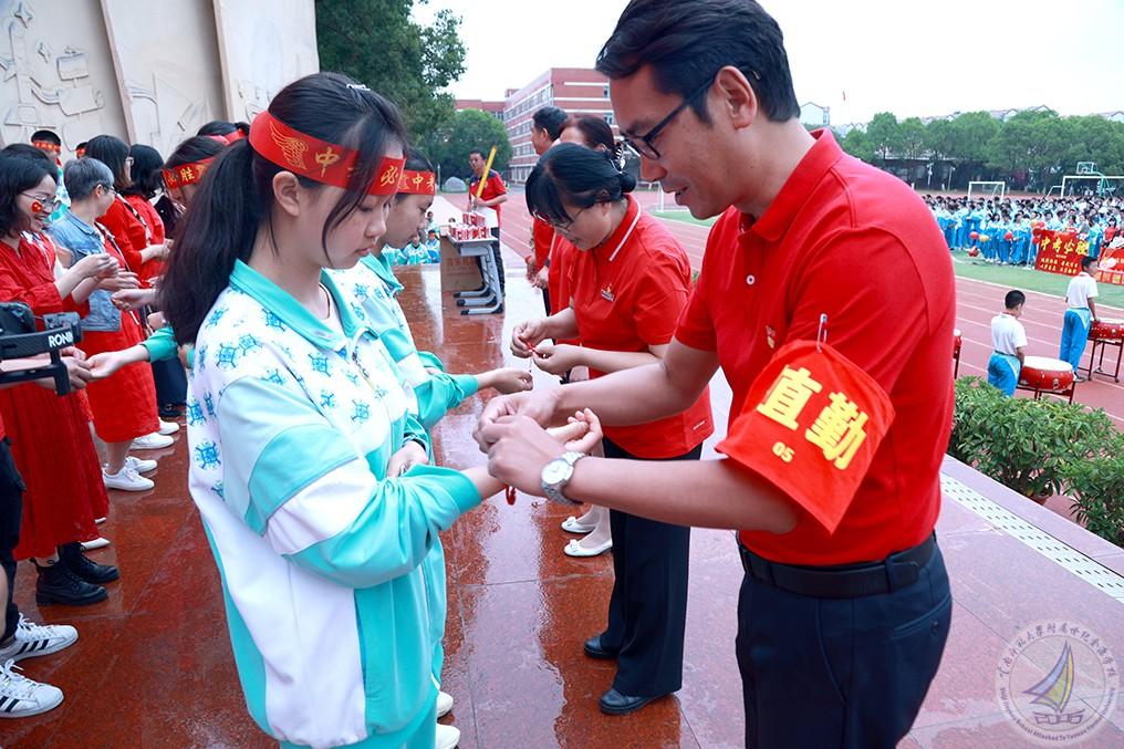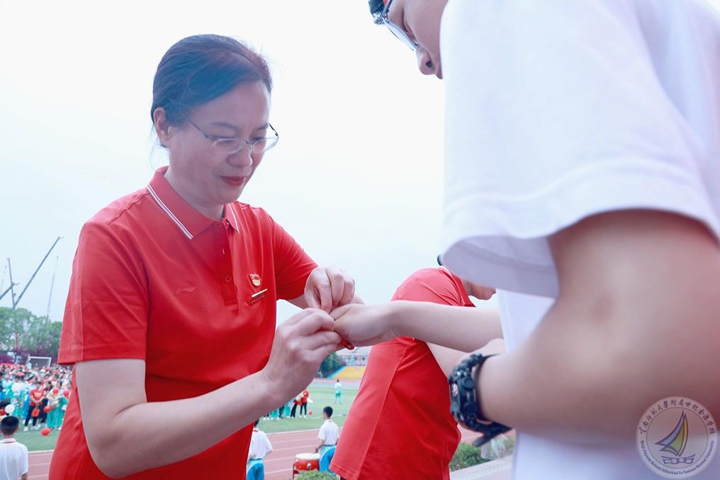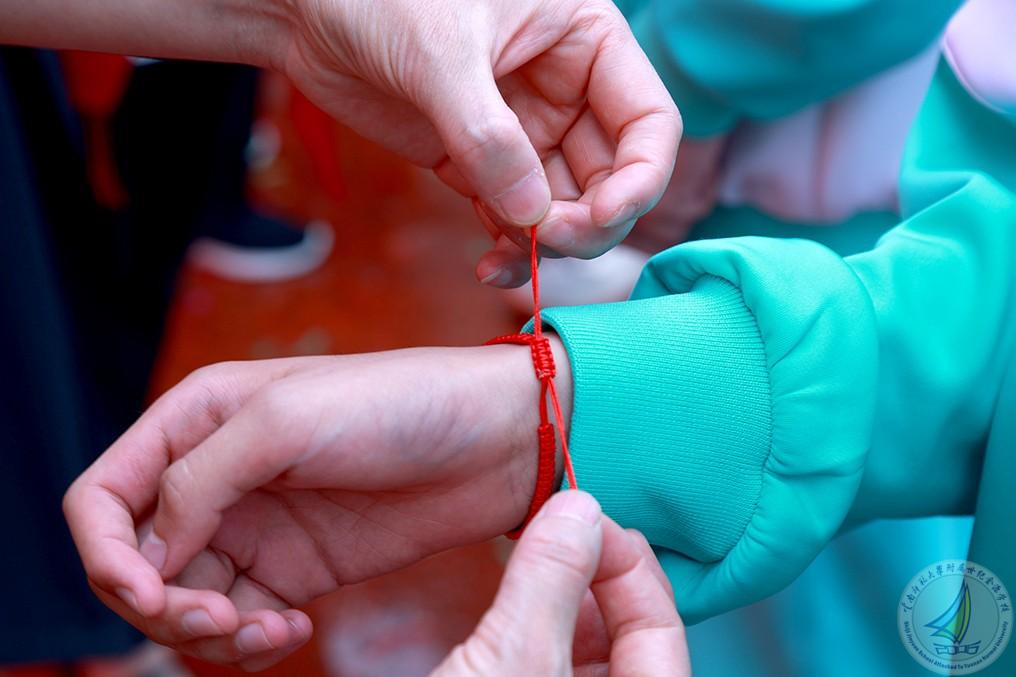 学校领导和初三的全体教师们一同为即将迈上征程的初三金源学子系上红绳,送上祝福。