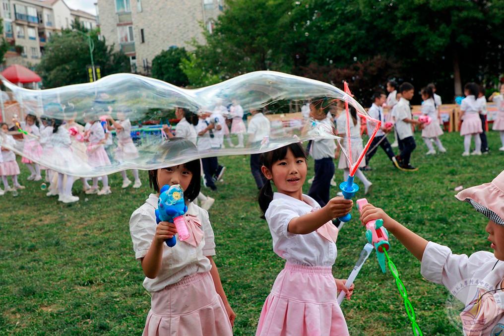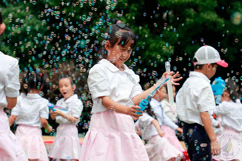 每个孩子都爱泡泡,泡泡飞,泡泡飘。充满泡泡的童心,从不疲倦的游戏。孩子们欢舞在泡泡的海洋里。