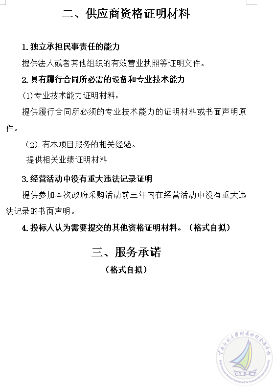 1.供应商具有独立承担民事责任的能力;具有履行合同所必需的设备和专业技术能力;参与本次政府采购活动前三年内,在经营活动中没有重大违法记录。