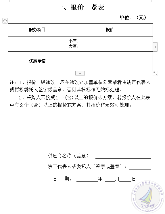(二)报价函必须填写完整且密封完好。