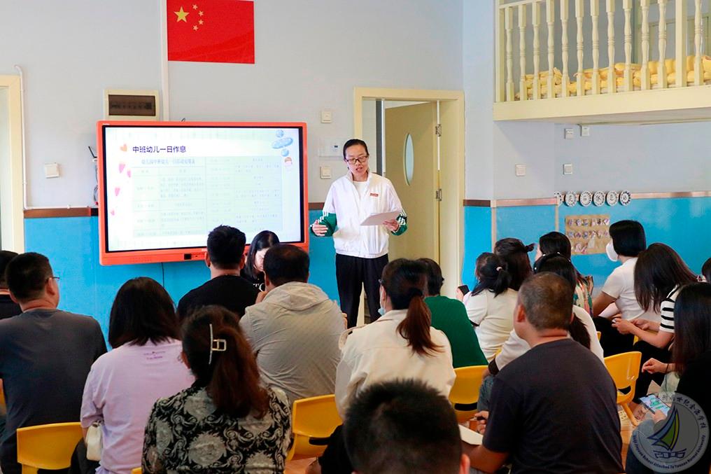 在班级家长会上,各班班主任老师以幼儿在园学习生活为抓手,从一日生活作息、安全教育、幼儿年龄特点及发展目标等各个方面进行讲解,也把幼儿入园后即将开展的大型活动等作了细致的介绍,帮助各位家长了解幼儿园的丰富多彩的生活。老师们还与家长深入探讨家园合作共育具体的方法与措施。家长们纷纷表示将密切配合老师做好家园共育,齐心协力劲往一处使,共同促进孩子健康成长。