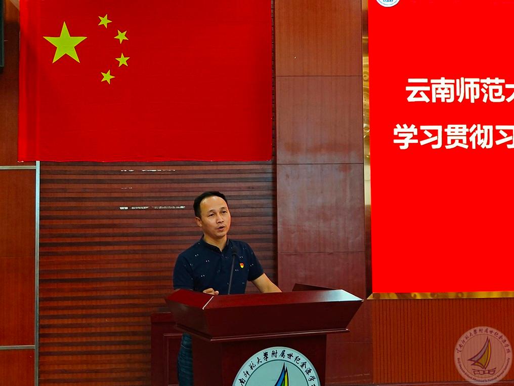会议的第二阶段,由初中党支部书记、初中组组长蔡国平老师主持“学习贯彻习近平新时代中国特色社会主义思想”专题组织生活会,暨初中党支部组织生活会,此次会议是面向全体党员的一次“政治体检”,目的是让每一名党员老师都能够更全面地认识自我,能够相互交流思想,增进感情,聚合动力,坚守好初心,勇于担起使命,磨砺出干事创业的“金刚钻”,从而为党的教育事业注入源源不断的动力。