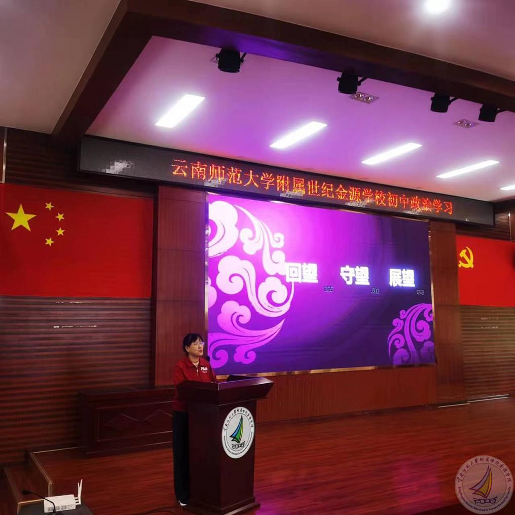 立足新起点,砥砺新征程。为确保新学年新学期教育教学工作平稳有序,8月29日下午15:50,初中组在学校报告厅召开新学期全体教师学习会议,分管副校长渠志春出席会议,安排部署新学期教育教学及安全工作,初中组全体教师参加会议。会议由初中组组长蔡国平老师主持。本次会议分为两个议程,第一议程由渠志春副校长做新学期开学动员讲话;第二议程由初中党支部书记蔡国平老师带领大家开展“学习贯彻习近平新时代中国特色社会主义思想主题教育”专题组织生活会。