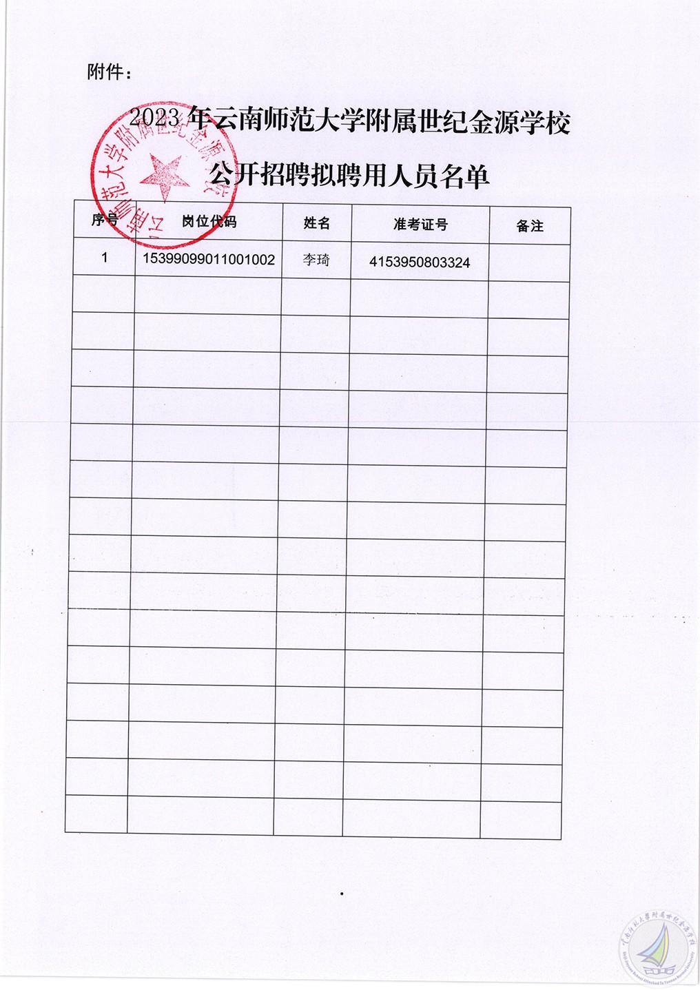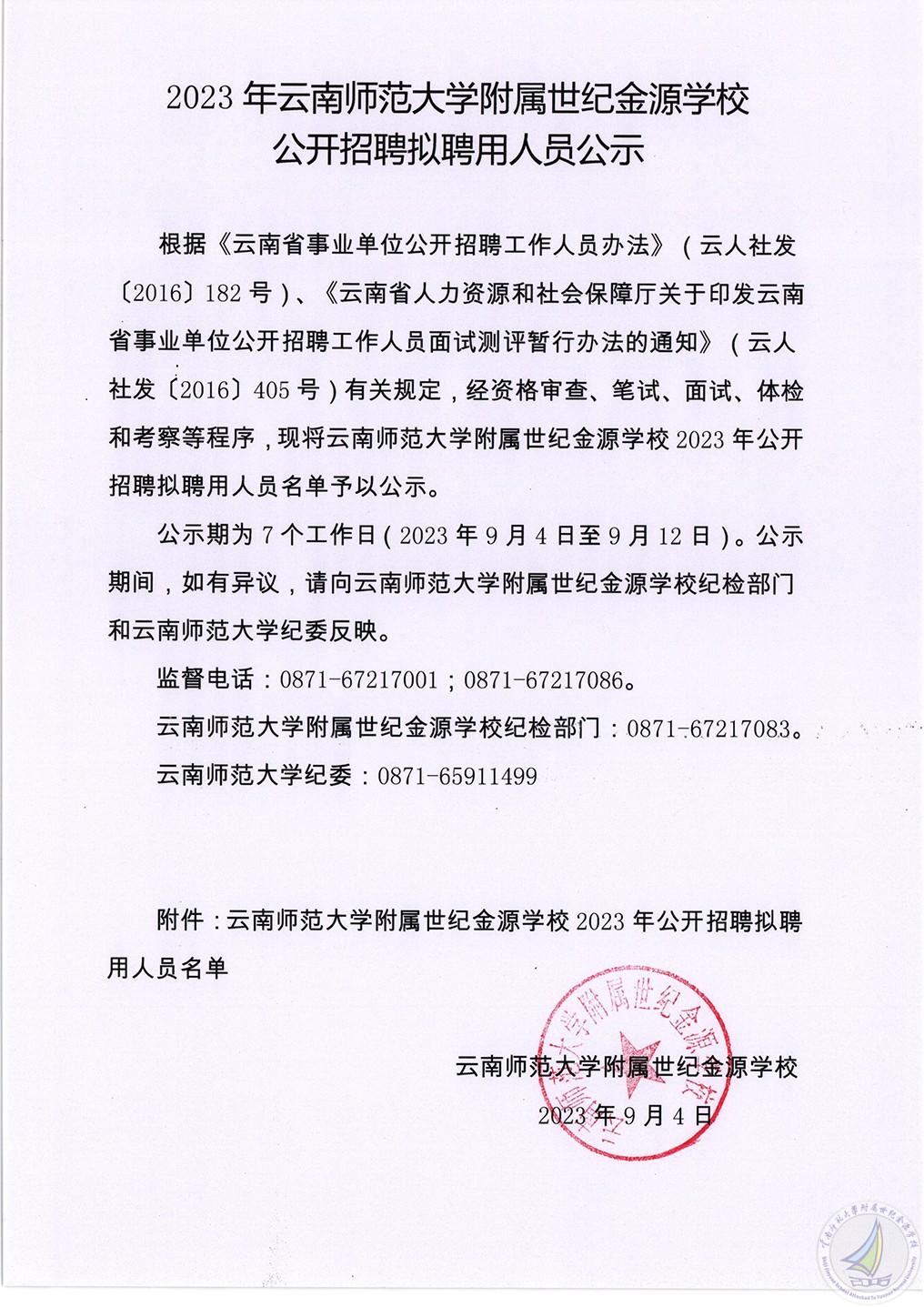 2023年云南师范大学附属世纪金源学校公开招聘拟聘用人员公示.pdf