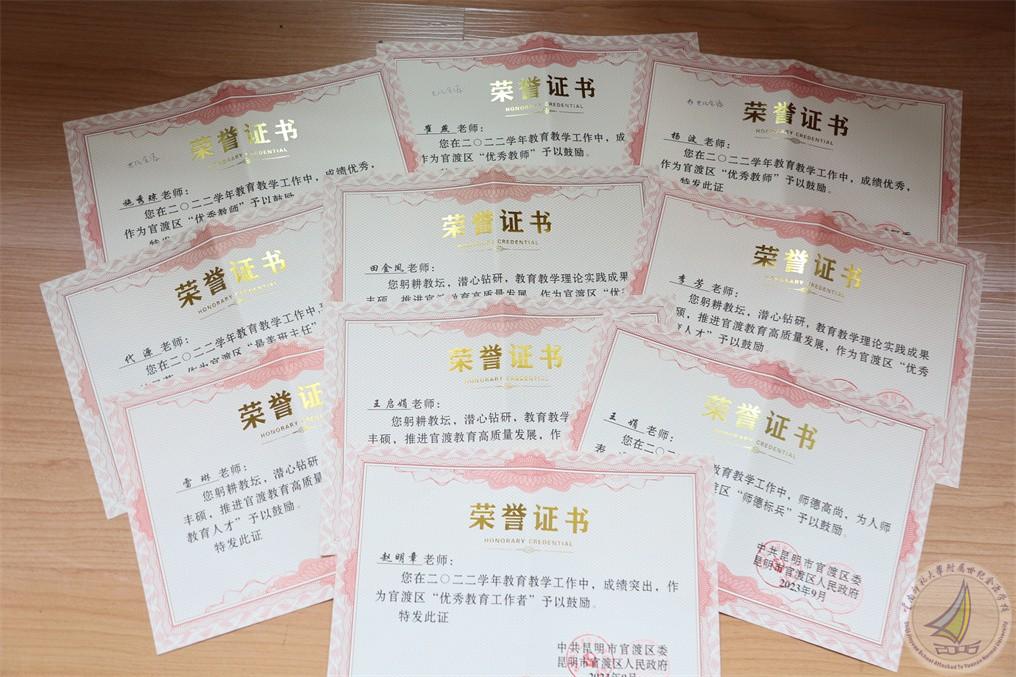 在第39个教师节来临之际,官渡区教体局表彰了2022学年官渡教育高质量发展集体和优秀个人。我校初中获得2022学年官渡教育高质量发展集体一等奖,幼儿园和小学获得2022学年官渡教育高质量发展集体二等奖,10位老师分别获得“优秀教师”“最美班主任”“师德标兵”“优秀教育工作者”“优秀教育人才”等荣誉称号。