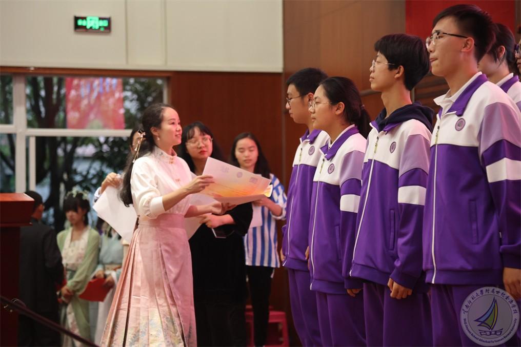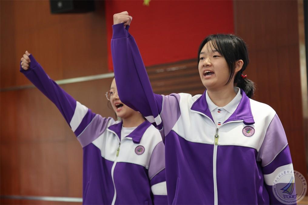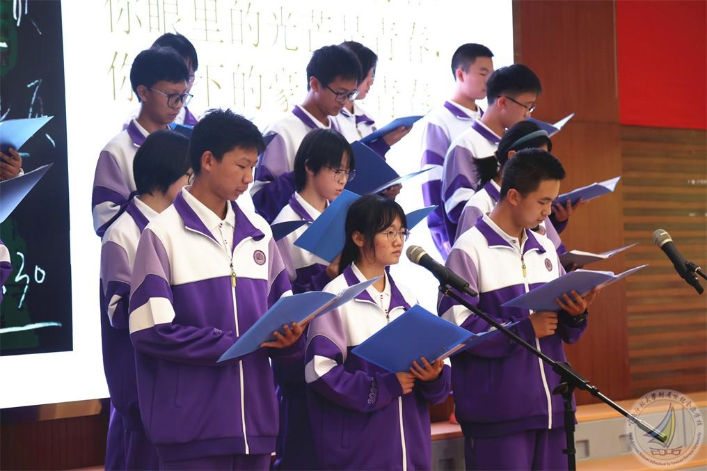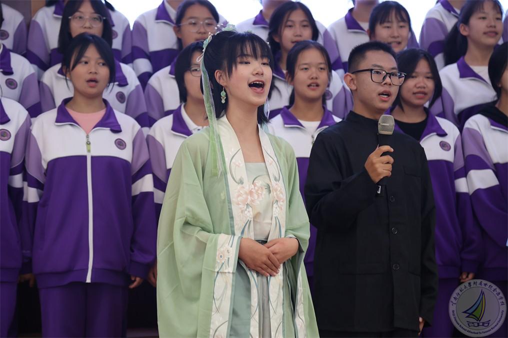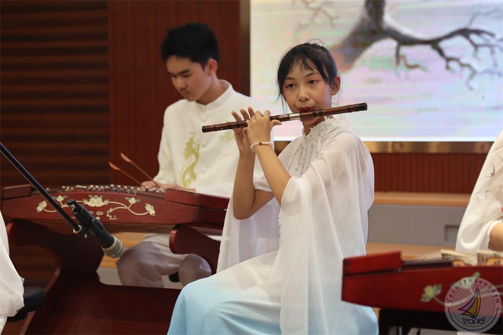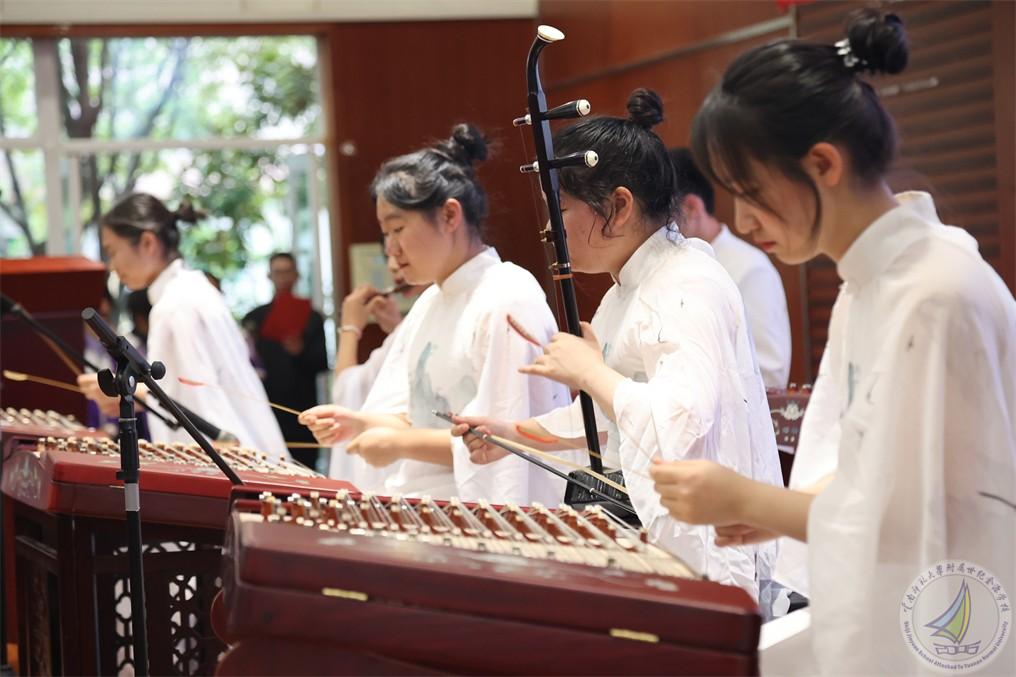 朗诵结束,特邀高二年级余雅欣、张皓宁、侯科宇、晏镱潇、刘琳、付瑶、郭世珏等同学为同学们带来扬琴表演。他们的精彩表演,让我们共同领略了扬琴的魅力,感受到传统音乐的美好。