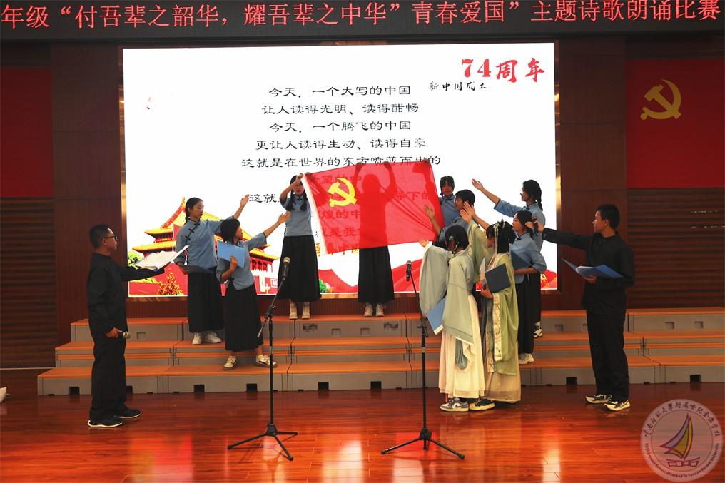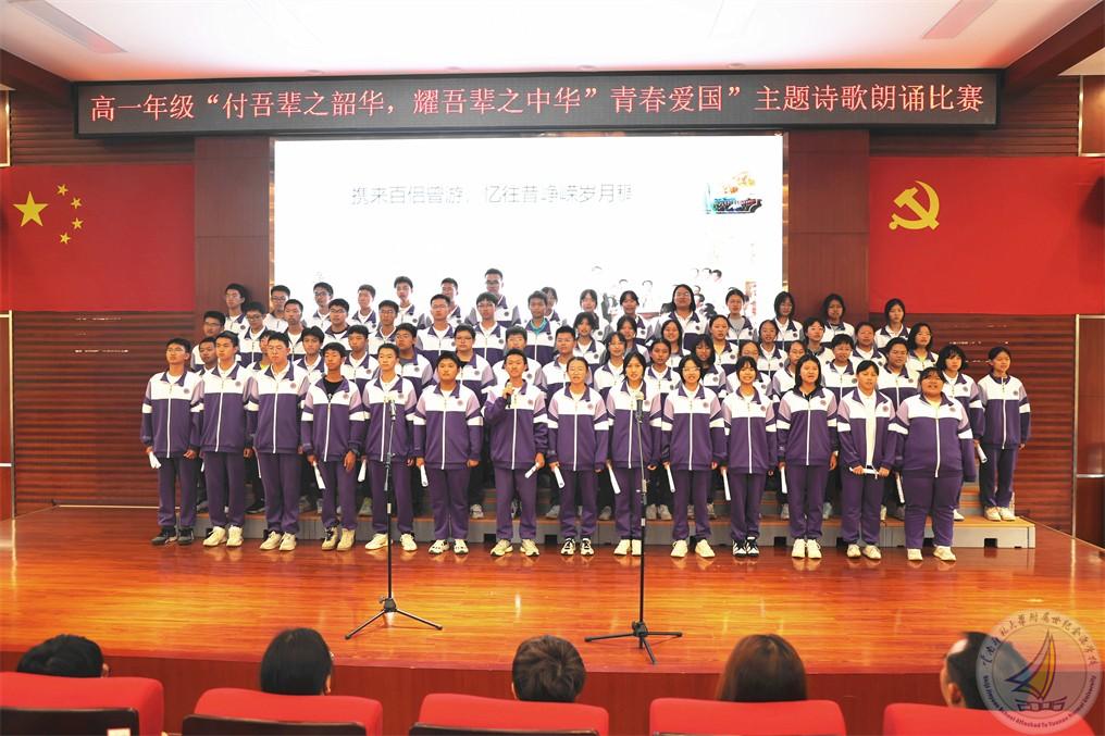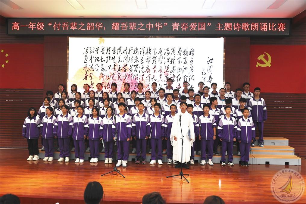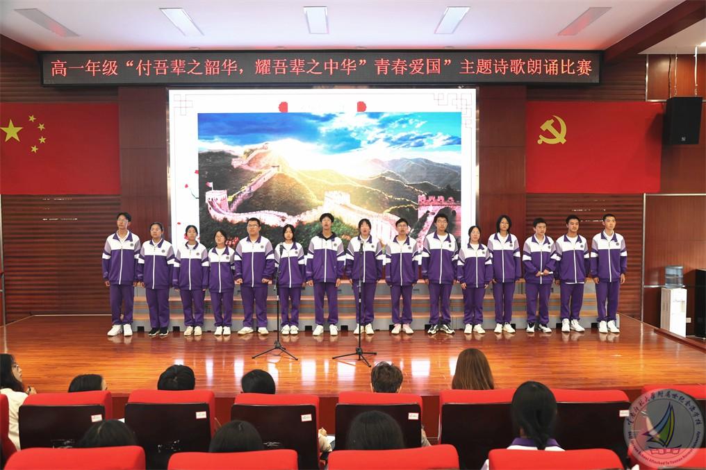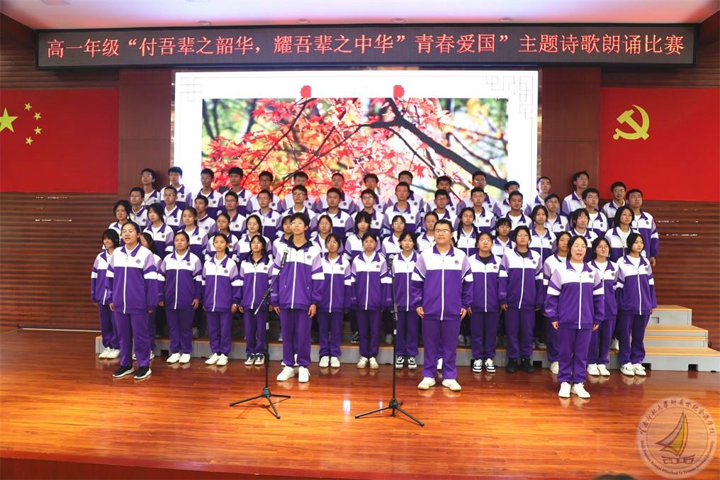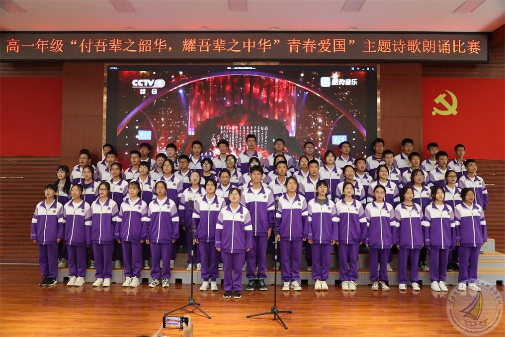 为了庆祝中华人民共和国成立74周年,喜迎国庆,歌颂伟大祖国的繁荣富强,激励广大学生的爱国情感,繁荣校园文化生活,增强同学们的文化自信与民族认同,树立为祖国的强盛而努力奋斗的远大抱负,不负韶华,不负时代,筑梦前行。我校高一年级特于国庆前夕举办以“付吾辈之韶华,耀吾辈之中华”为主题的“青春·爱国”诗歌朗诵比赛。