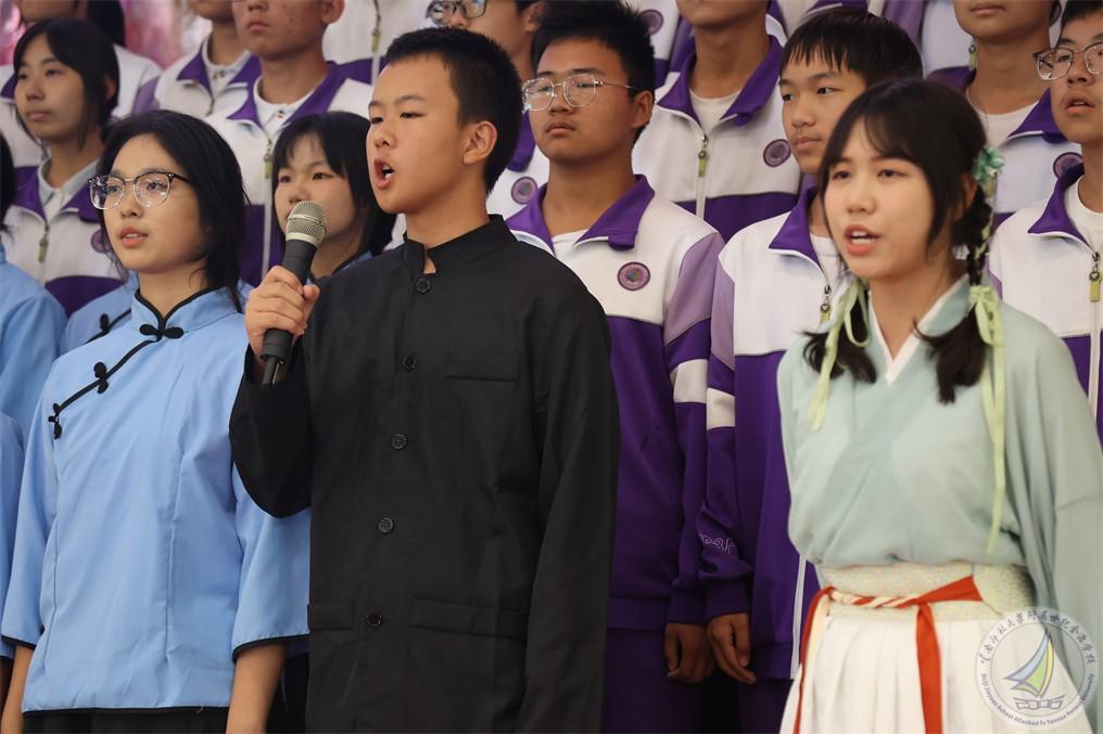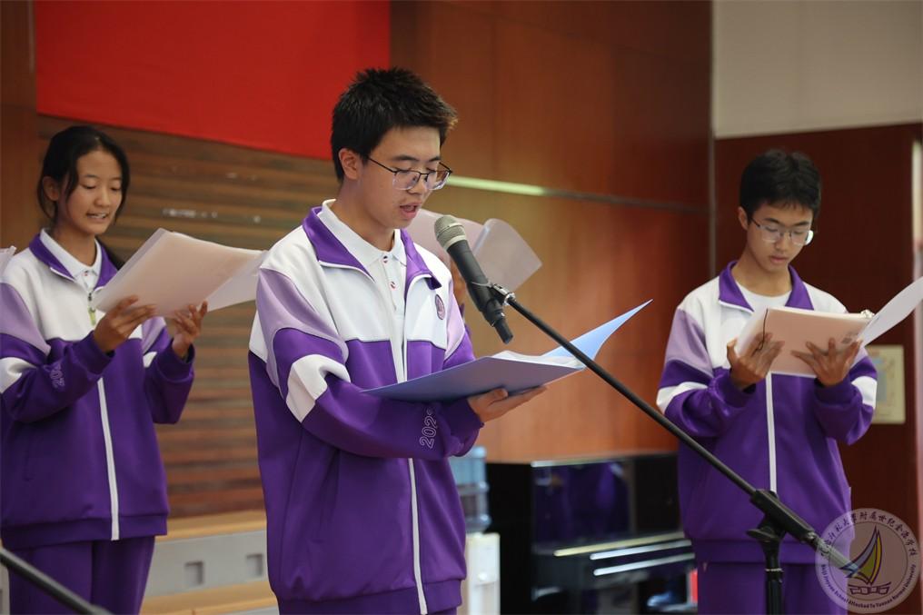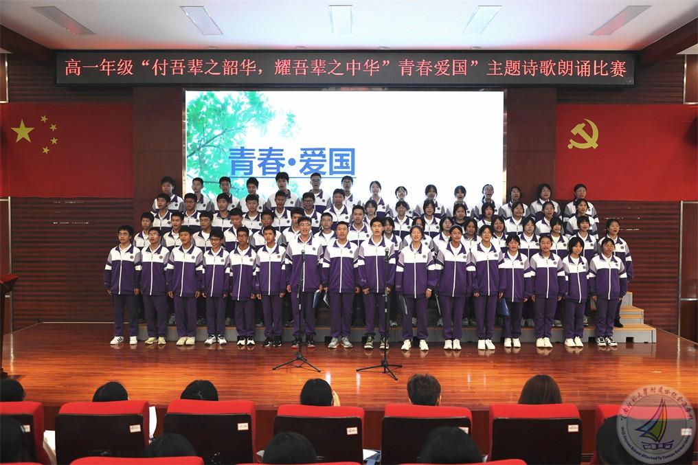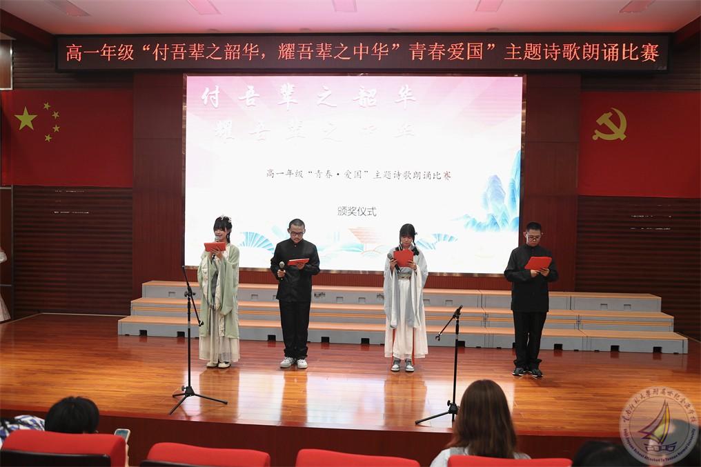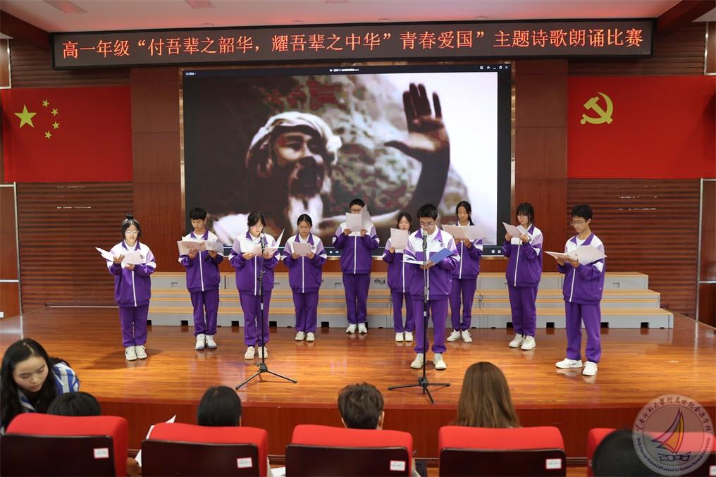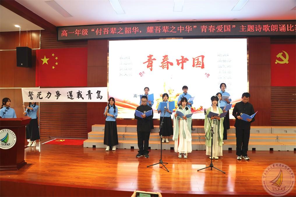 为了庆祝中华人民共和国成立74周年,喜迎国庆,歌颂伟大祖国的繁荣富强,激励广大学生的爱国情感,繁荣校园文化生活,增强同学们的文化自信与民族认同,树立为祖国的强盛而努力奋斗的远大抱负,不负韶华,不负时代,筑梦前行。我校高一年级特于国庆前夕举办以“付吾辈之韶华,耀吾辈之中华”为主题的“青春·爱国”诗歌朗诵比赛。
