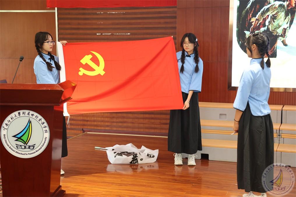 一班同学朗诵毛泽东《沁园春·长沙》与欧震《青春中国》。