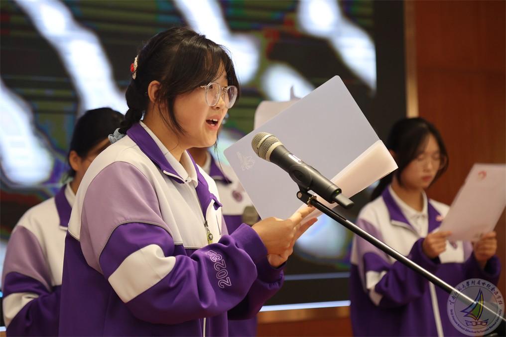 同学们的朗诵声音嘹亮,抑扬顿挫,富有感情,洋溢青春的激情,流露家国情怀,抒发对祖国的热爱以及为中华民族伟大复兴而奋斗的雄心壮志,让人震撼。各班的朗诵均有亮点、创意,可谓各有千秋,可圈可点,同学们均拿出了自己的“绝活儿”。各班显才华、现创意,不仅朗诵字字有力、深情动人,还将音乐、视频、歌曲、情景剧等和朗诵融合,为我们献上了一场异彩纷呈的视听盛宴。李保琼老师在各班朗诵完后对同学们的朗诵进行了独到的点评。