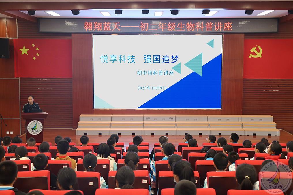 2023年10月9日下午两点,我校有幸请来了申立中教授,在学校报告厅为初二年级所有学生进行“悦享科技,强国追梦”科普进校园讲座。申立中教授是昆明内燃机学会理事长、昆明理工大学首席教授。他研究爱鸟,护鸟多年,经验丰富,他对鸟类研究有着独到而深刻的见解。