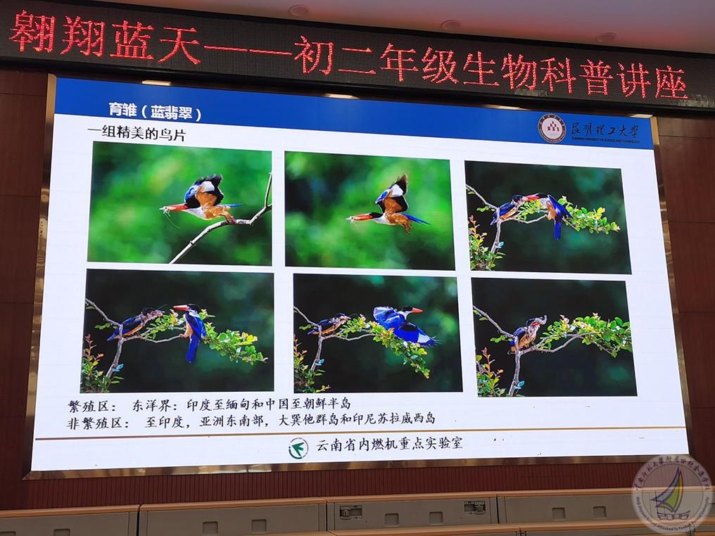 讲座中申教授告诉同学们,现在世界上有鸟类9000多种,中国就有鸟类1491种,我们云南尤其多,有鸟类超过1000种。这次讲座使同学们感受到我国生物的多样性丶丰富性和独特性。