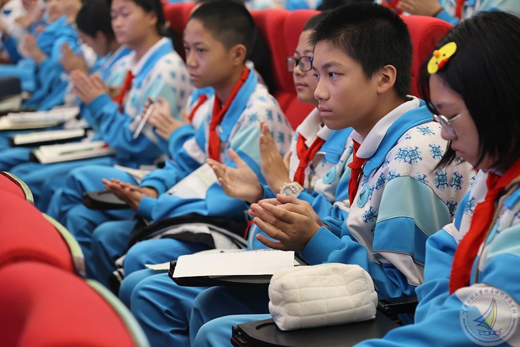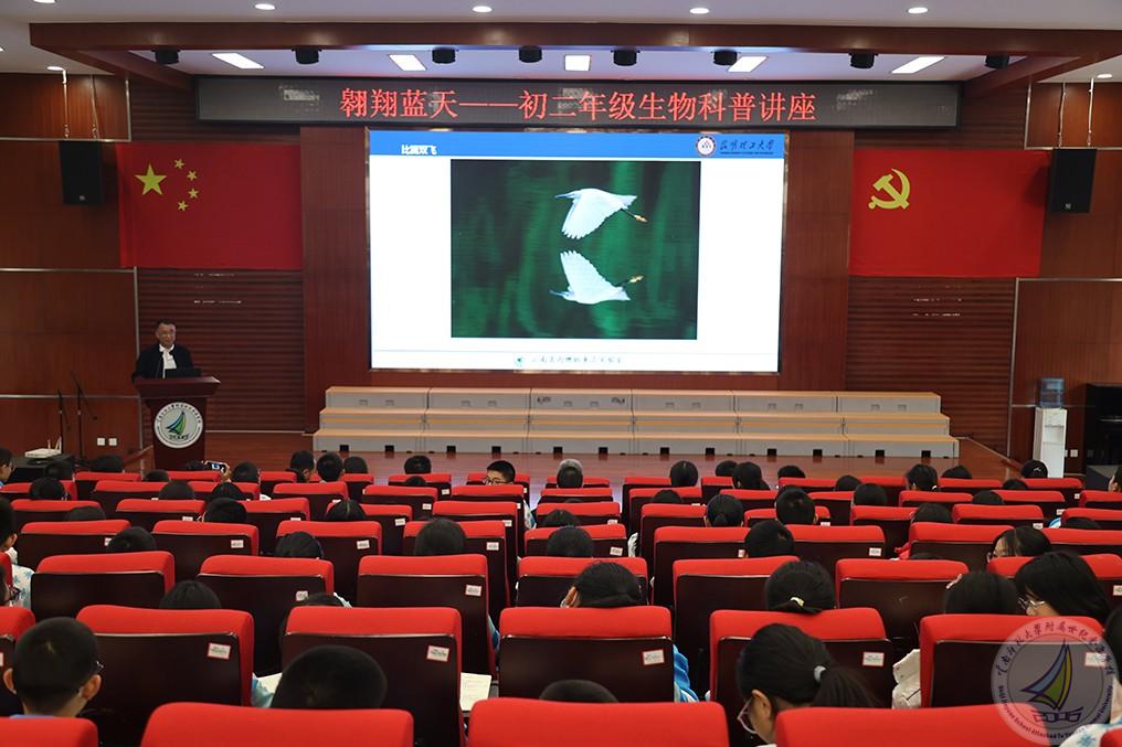 讲座结束时申教授祝同学们:海阔凭鱼跃,天高任鸟飞,祝同学们在成长的路上翱翔蓝天。并给予我校学生高度评价,表扬我校学生积极上进,思维灵活。最后,初中部支部书记蔡国平老师带领全体同学向申教授表示衷心地感谢。蔡老师还对这次讲座进行了总结,他说申教授“因为喜欢所以热爱,因为热爱所以专业,因为专业所以坚持”。蔡老师呼吁全体同学向申教授学习,希望同学们找到自己的兴趣爱好并坚持下去,成就自己的梦想。并呼吁全体同学把爱护鸟类、爱护环境,体现在实际行动中,共同守护人类的朋友。