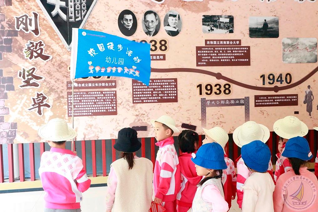 幼儿园是孩子走向社会的第一步,也是塑造孩子道德品质的关键时期。在老师的带领下孩子们参观了我校西南联大文化长廊,聆听了革命先辈的感人事迹,帮助孩子建立对祖国的深厚感情,培养家国情怀,增强国家荣誉感和民族自豪感。