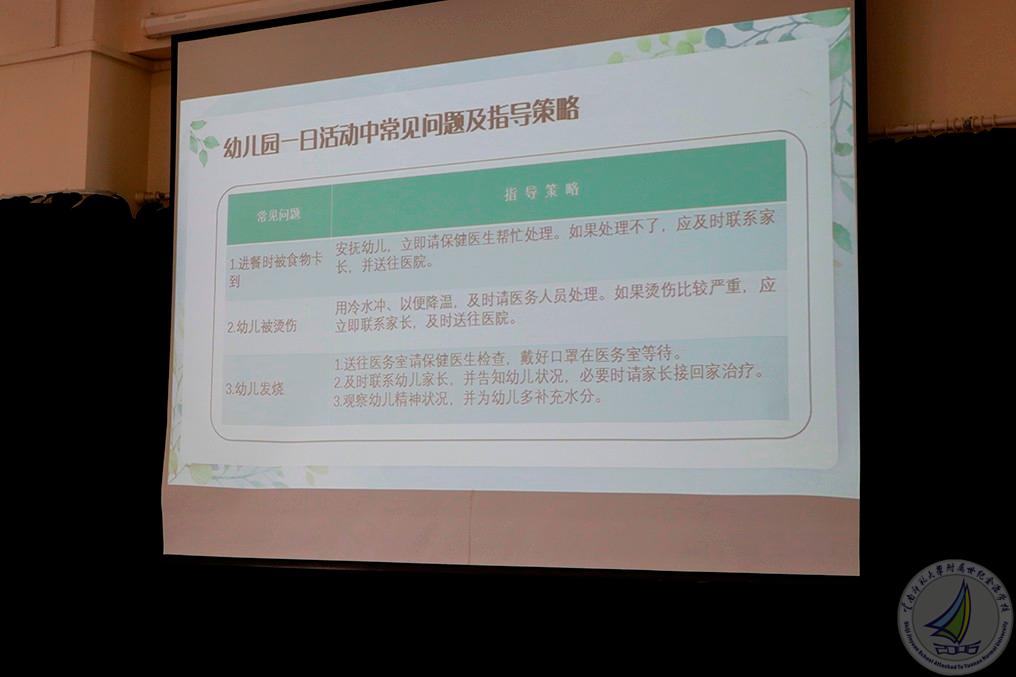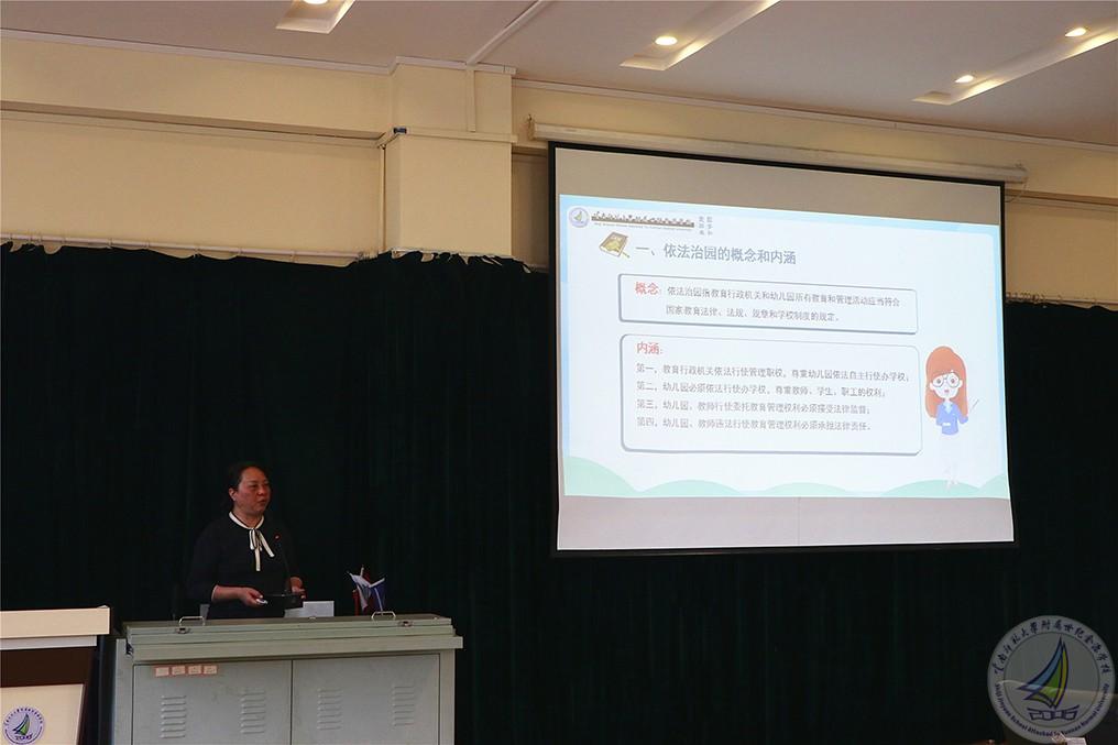 分管幼儿园各块工作的四位中层干部分别进行了交流发言。杨洁主任以时间为线索,从幼儿入园、盥洗、体育活动等环节,逐一剖析了幼儿一日生活常规中存在的风险点及应对措施;教务教科中心李芳副主任从生活活动、学习活动、体育活动、游戏活动、集体教研等方面的教学计划制定和注意事项进行交流;党支部崔燕书记围绕“一日活动中常见问题及指导策略”和“家长工作的技巧与策略”两个内容进行指导建议;王云丽副主任从结合《学前教育法规理论与实务》从一日活动各环节教师的站位等方面进行交流。