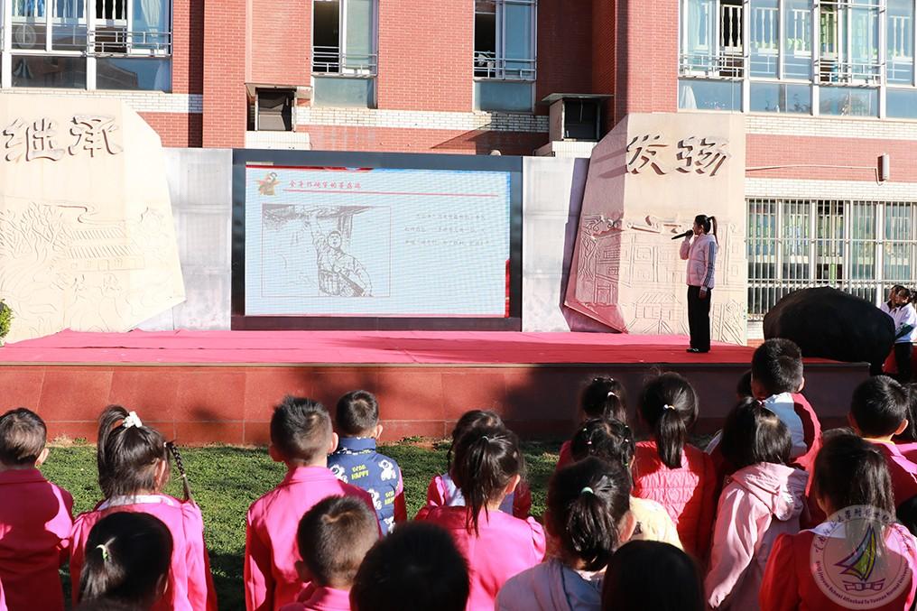 “人生百年,立于幼学”,历史是最好的教科书,为激发孩子们爱党爱国的情感,自觉继承革命传统、传承红色基因,从小树立正确的人生观和价值观,扣好人生第一颗扣子,在联系领导鲍学良副校长的指导下,幼儿园杨洁园长、办公室王云丽副主任、教务教科中心李芳副主任、党支部崔燕书记,积极利用每周一升旗仪式,向全园老师和孩子们进行红色主题系列绘本宣讲活动,带着全园孩子一起阅读!