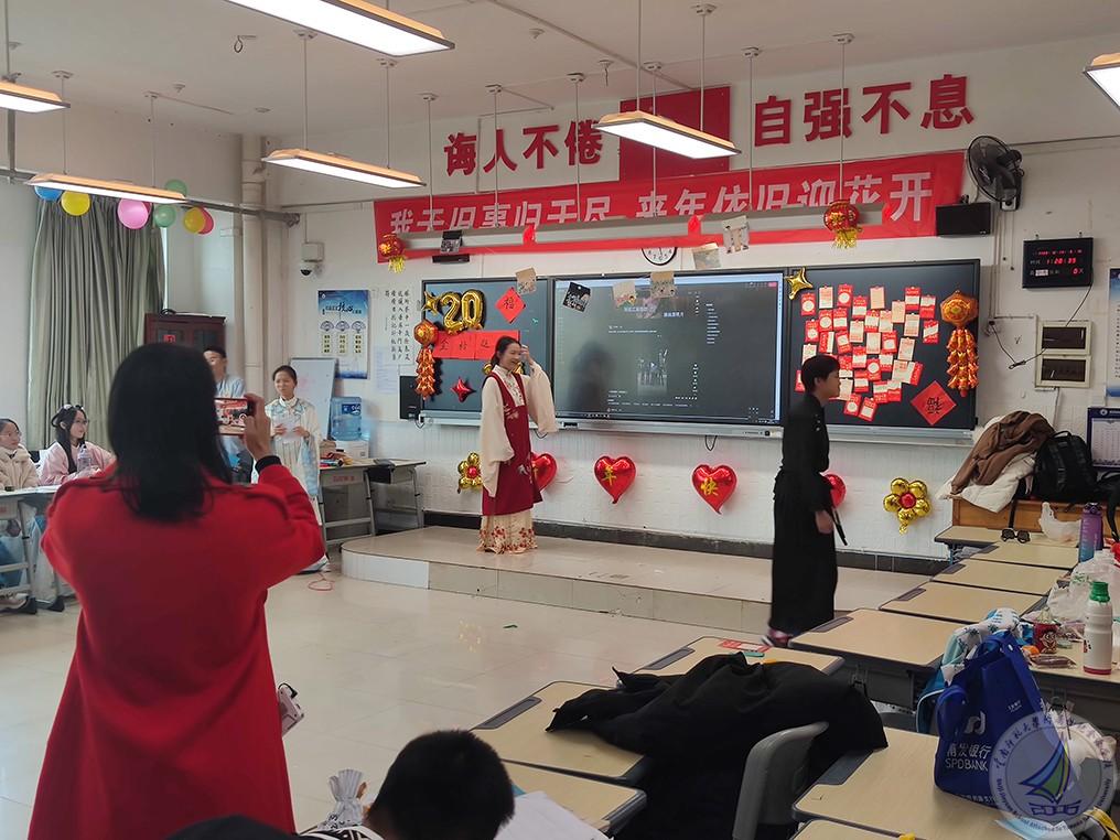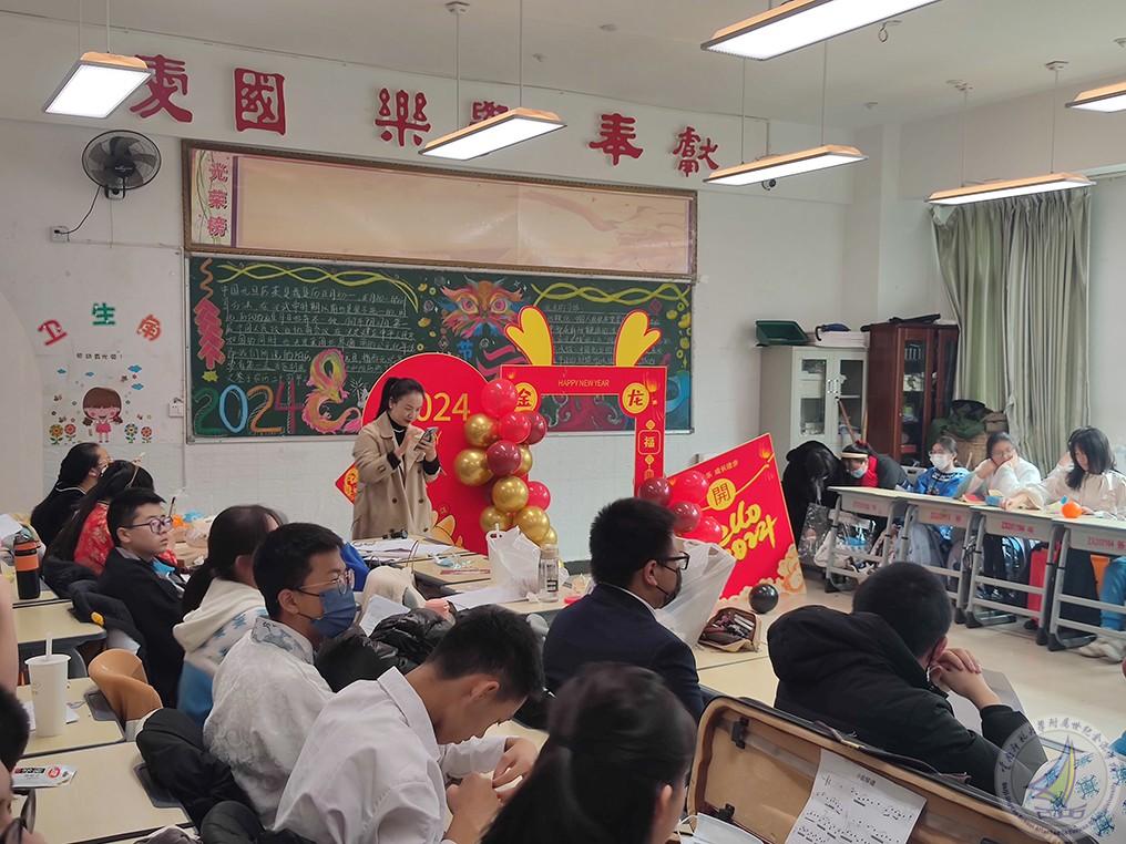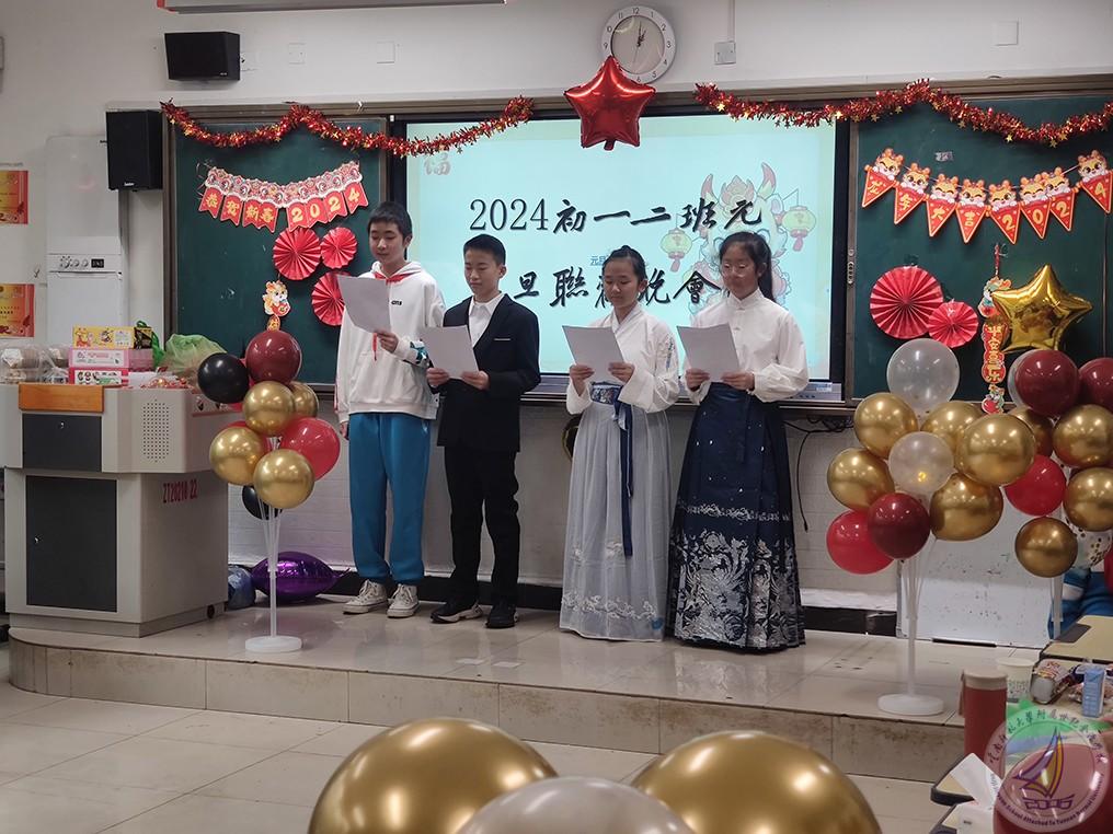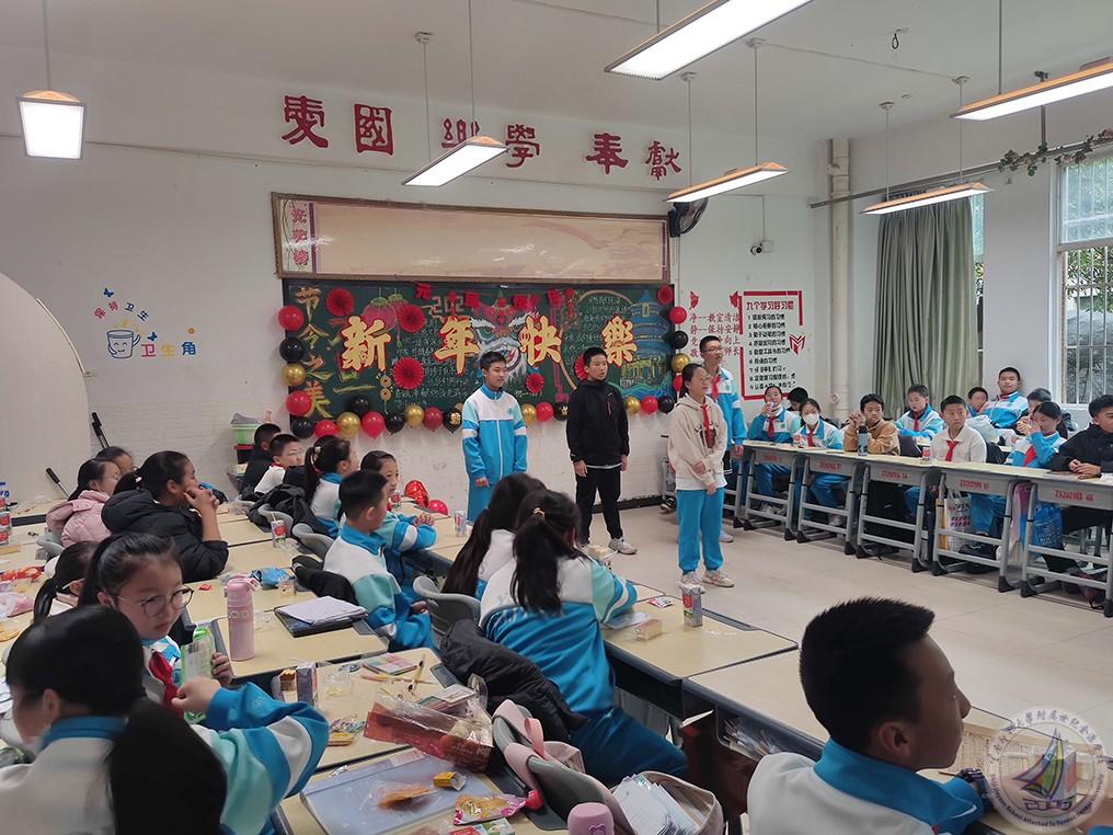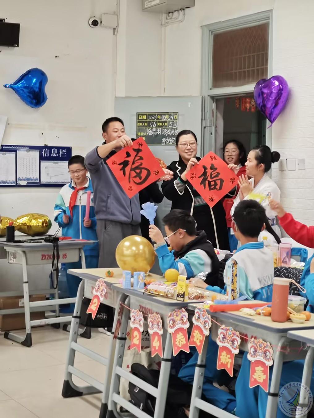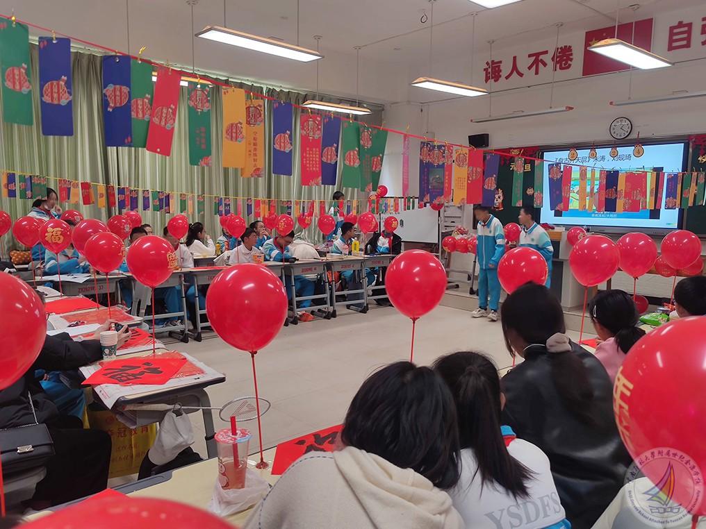 七年级师生在各班教室开展了以“心向未来.筑梦前行”为主题的迎新活动,活动以“猜谜语丶灯谜丶写福字丶新春对联展示”等传统文化为主线,其间穿插唱歌丶舞蹈丶小品丶相声丶诗歌丶朗诵丶讲故事丶戏剧丶乐器表演等文艺活动。