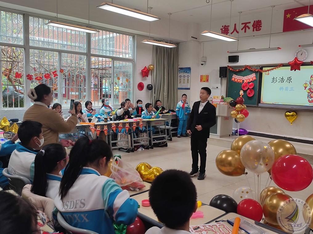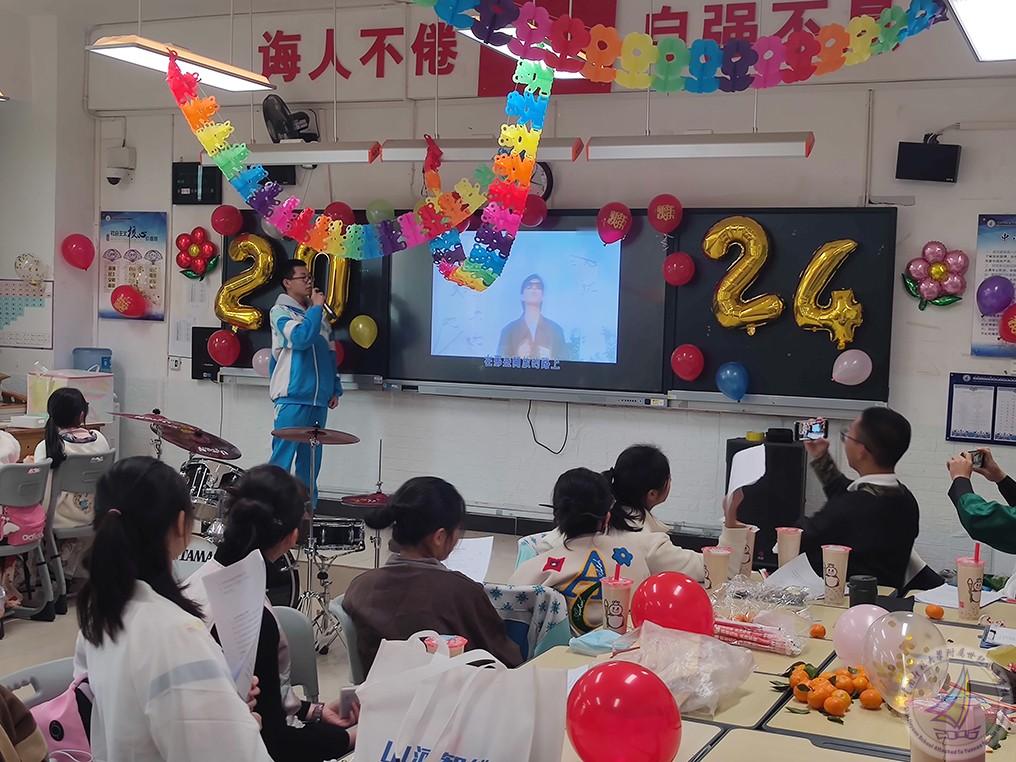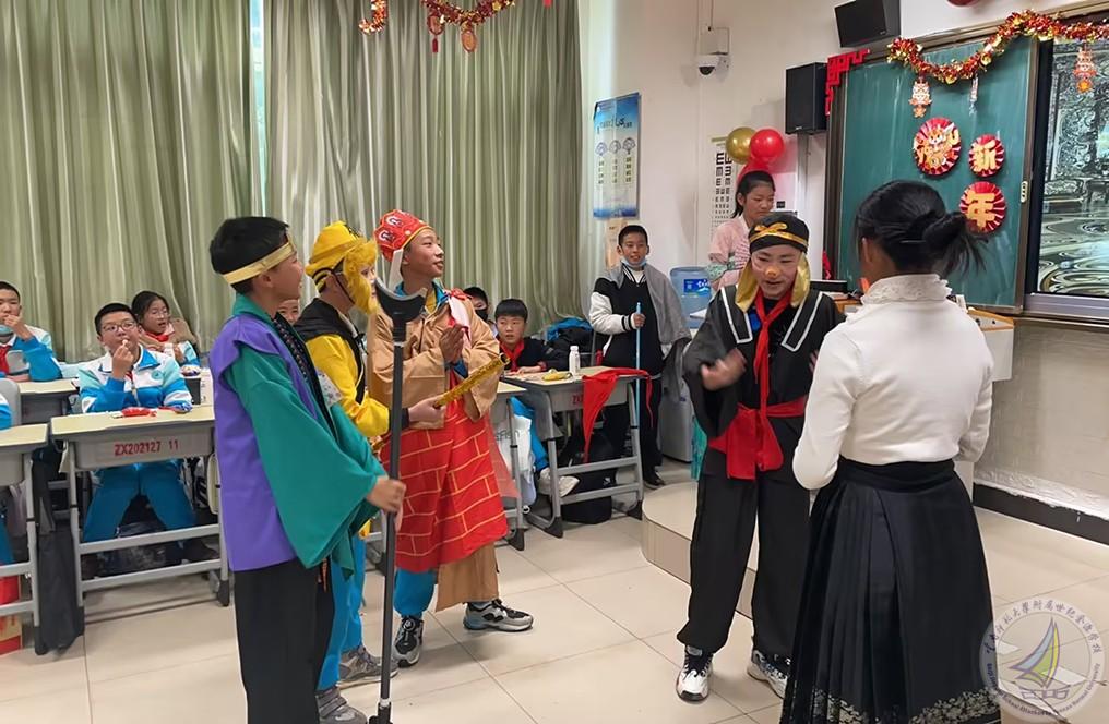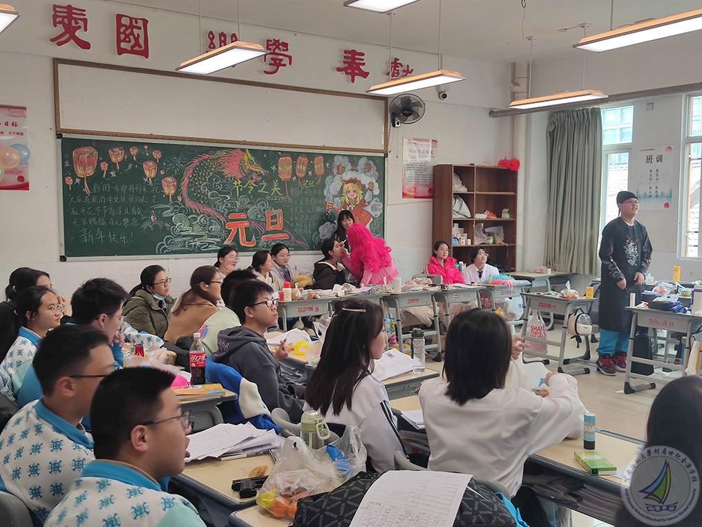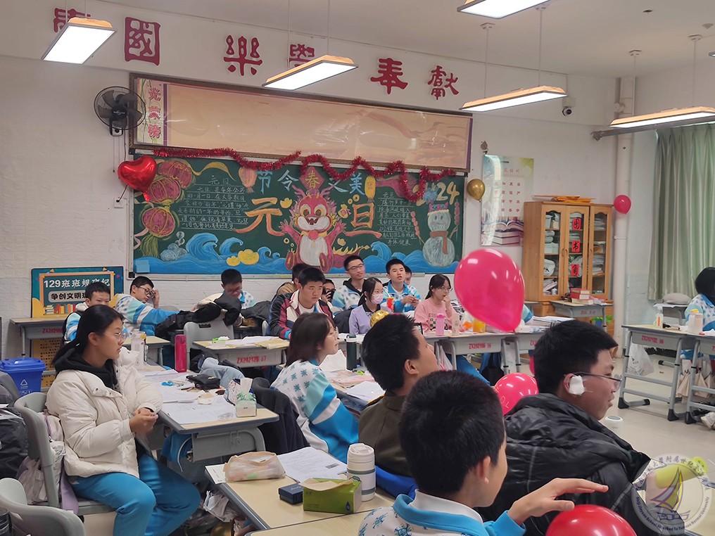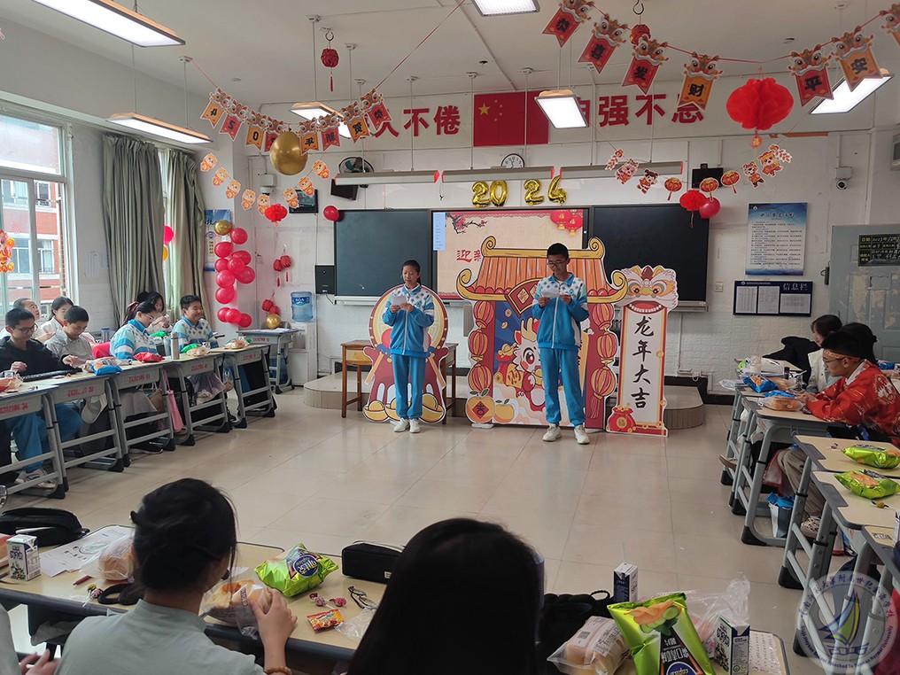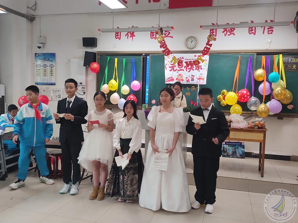 七年级师生在各班教室开展了以“心向未来.筑梦前行”为主题的迎新活动,活动以“猜谜语丶灯谜丶写福字丶新春对联展示”等传统文化为主线,其间穿插唱歌丶舞蹈丶小品丶相声丶诗歌丶朗诵丶讲故事丶戏剧丶乐器表演等文艺活动。