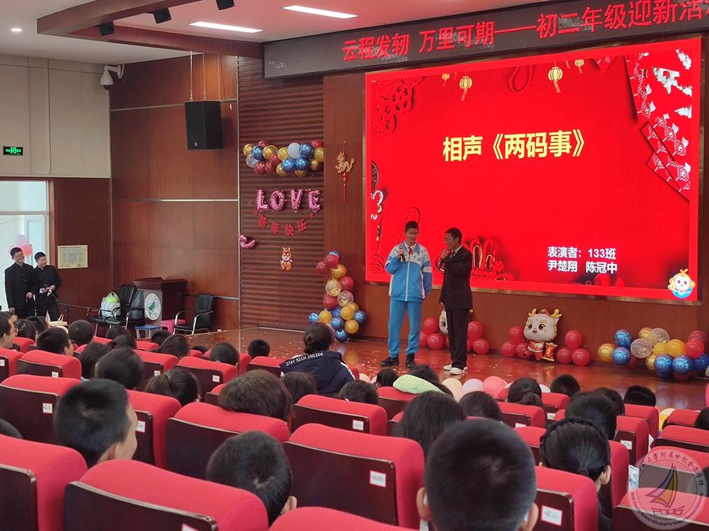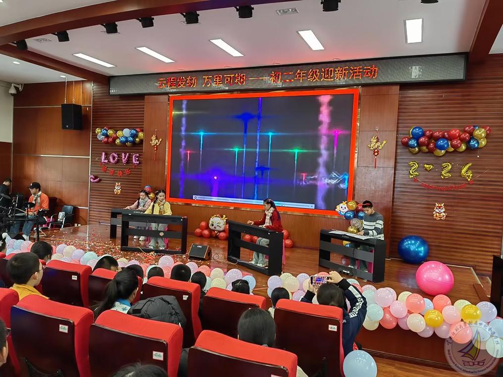 八年级师生以“云程发轫.有可期”为主题,在学校报告厅开展了活动,活动主要以“抢礼品丶文节艺目表演丶游戏”等为主,整个活动形式多样,精彩纷呈,师生们热情高涨,报告厅里充满了欢声笑语。