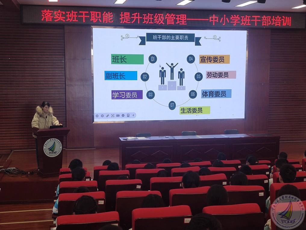为了提高初中学生干部的组织协调能力,沟通表达能力和领导能力,以便更好的服务于班级和个人成长,2024年1月12日,初中组召开了学生干部培训会,初中组王娟老师,分别从班干部在班级中的作用、主要职责、应树立几种工作意识、需要注意的几种观念、工作的基本方法、应具备的素质、如何树立威信、如何开展班级活动和安全教育等方面进行了培训。