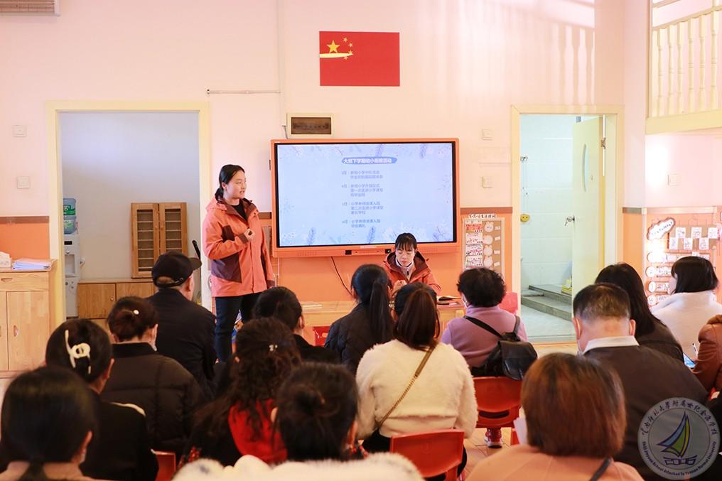 大班教师以幼小衔接为抓手,将幼儿入学准备与学期工作相结合,向家长们汇报了本学期幼儿的发展情况。介绍幼儿进入小学需要做好的身心准备,缓解家长们的焦虑情绪。