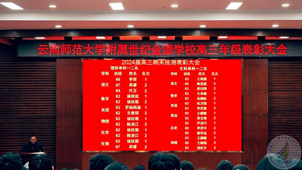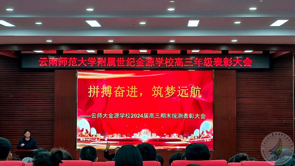 为表彰先进,树立榜样,营造良好的学习氛围,引导学生全力备战高考,2024年2月21日晚19点,云师大世纪金源学校2024届高三期末统测表彰大会在学校报告厅顺利举办。