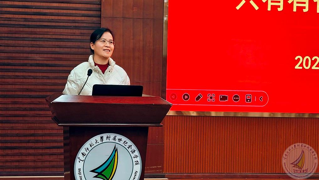 在庄严肃穆的国歌齐唱之后,王英书记作主题讲话。她首先对在本次统测中取得优异成绩的同学表示祝贺,并以一句话作为开篇:“没有不请自来的幸运,只有有备而来的惊艳。”她以一张图形象生动地阐明了一个道理——在求学过程中,累“死”你的不是学习,而是学习中遇到的“鬼”。王书记鼓励同学们赶走这个捣乱的“小鬼”,从而做到心无旁骛,全力以赴。虽然在这样的过程中,“坚持是痛苦的,诱惑是巨大的,影响是时时刻刻的。”但只要坚持到最后,便一定能用行动谱写出人生的新篇章!