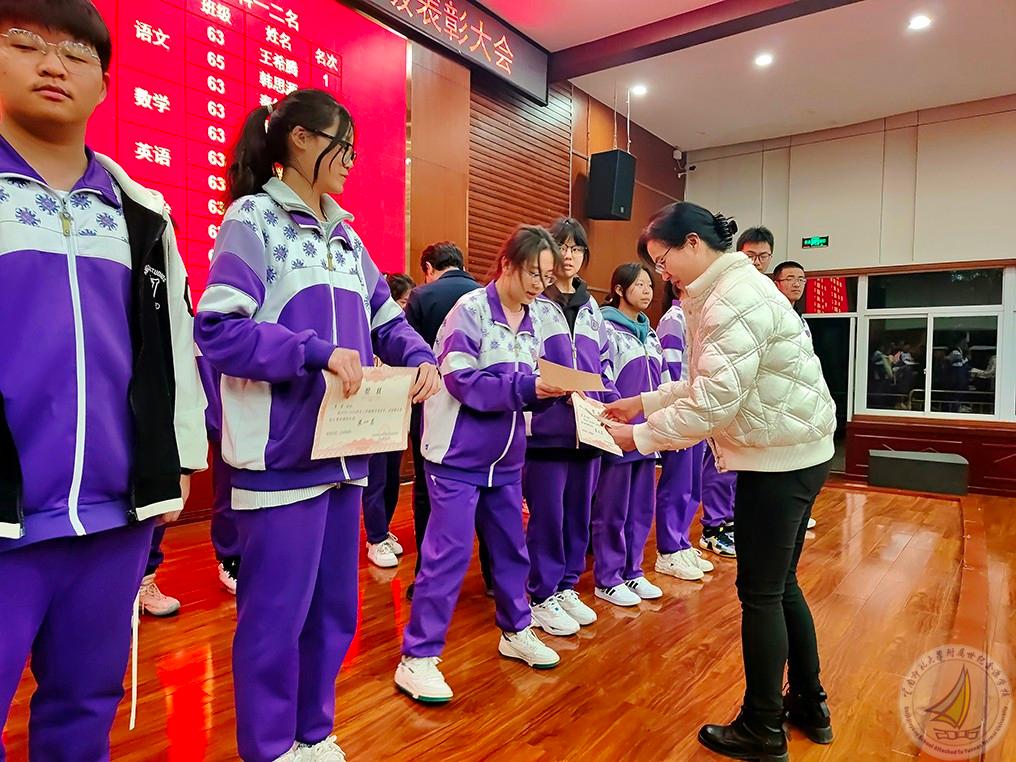 表彰大会由高三年级年级主任吴永德老师主持,学校党委书记王英,党委副书记许全友,副校长简文武,中学段办公室主任肖勤,高三全体班主任及同学们参与了本次表彰大会。