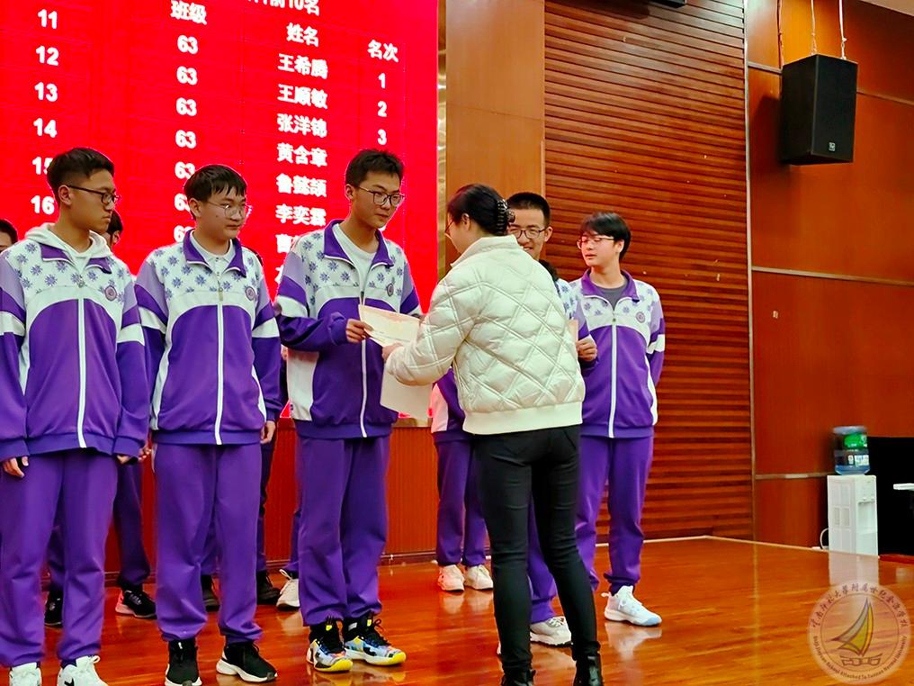 颁奖结束后,理科前10名和文科前5名的同学在台上发表获奖感言,交流学习心得,展现了我校高三学子互帮互助、奋力向前的良好品质。