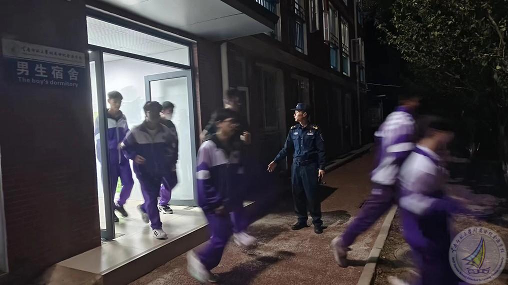 为了贯彻落实“火灾隐患大排查、大整改、保安全”的精神,加强住校生消防安全意识,提高自救防范能力,做到在发生火警火灾时能临危不乱地按照消防逃生路线安全疏散,确保师生生命安全。2024年2月25日晚9:45,安全保卫中心、高中组、后勤保障中心、联合组织全体住校生开展应急疏散演练。崔汝坤副校长、安全保卫中心、后勤保障中心、高中组负责人,高中年级主任、班主任、保安队、全体宿管老师以及600多名住校生共同参加本次疏散演练。