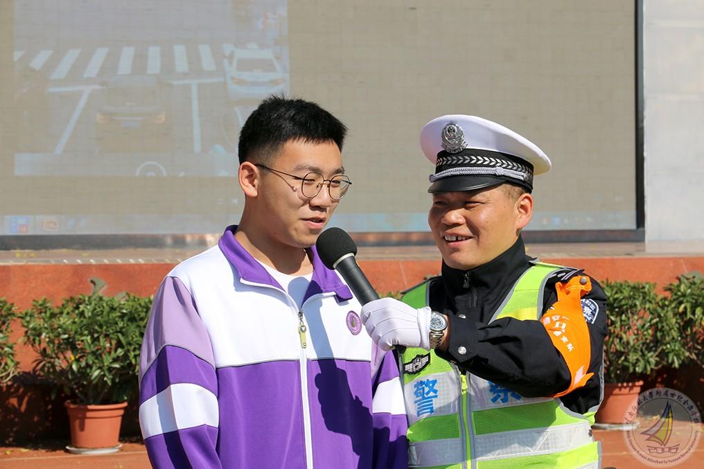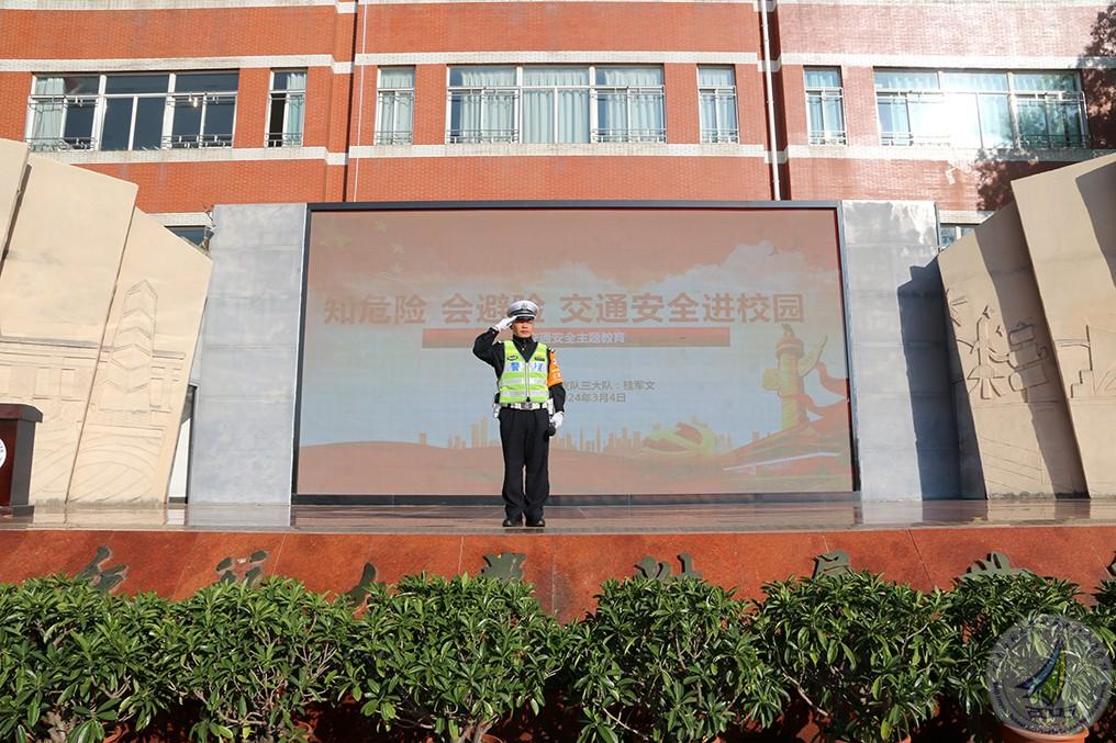 为全面提高全校师生的交通安全意识和自我保护能力,预防和减少学生道路交通事故的发生。2024年3月4日上午,昆明市交警支队三大队队长吴俊松、副中队长鲁刚楼、宣传委员桂军文到我校开展主题为“知危险 会避险”交通安全宣传教育进校园活动。