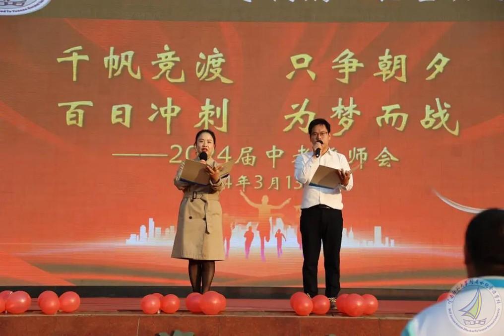 我校校领导、各中心主任、初三年级全体师生及家长参加誓师大会。