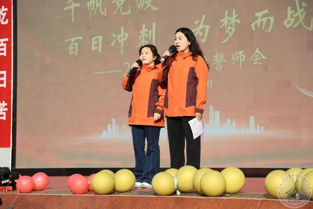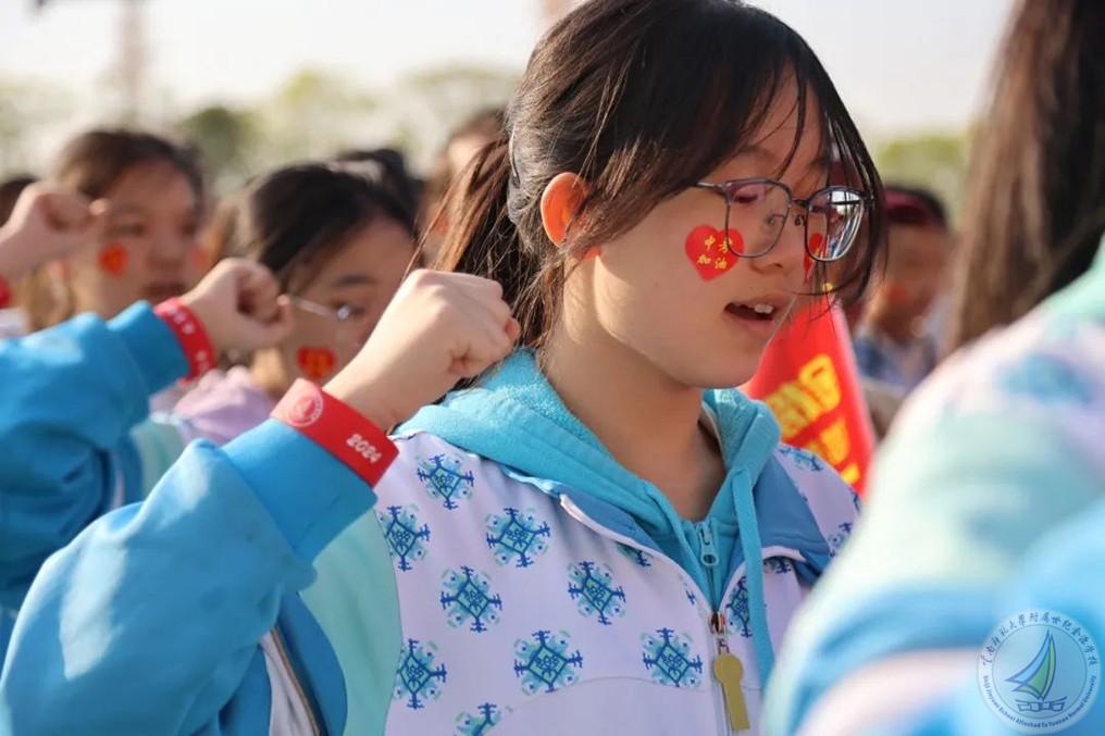 在庄严肃穆的国歌声中,拉开了誓师大会的帷幕。