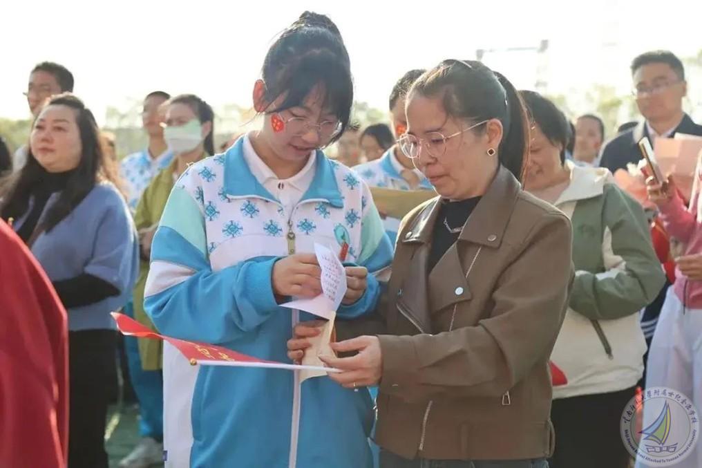 孩子们在老师的陪伴下,走过红毯,穿越状元门,带着老师们的殷切祝福,以青春之名,共赴中考之约!