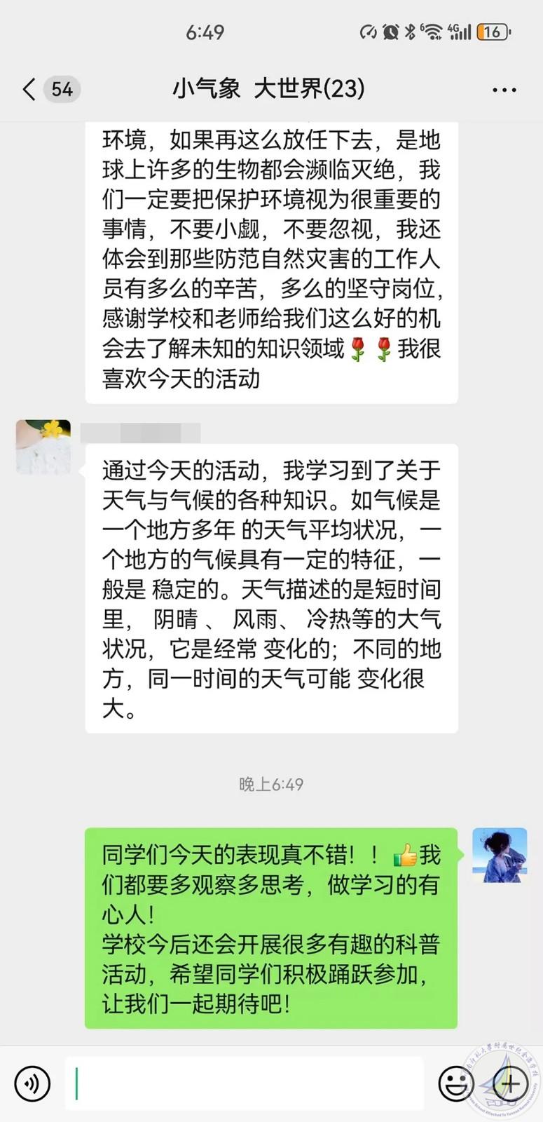 活动结束时,老师们鼓励孩子们在生活中继续关注气象变化,学习气象知识,为未来的气象事业贡献力量。孩子们回家后纷纷给老师发来今天的学习心得!