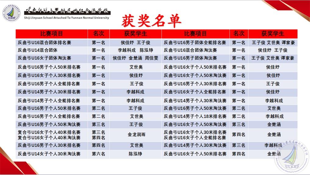 云南师范大学附属世纪金源学校是云南省最早一所国家体育总局任命的“全国射箭重点学校”,同时也是“云南省射箭项目特色学校”,“昆明市传统体育网点学校”和“官渡区传统体育网点学校”。